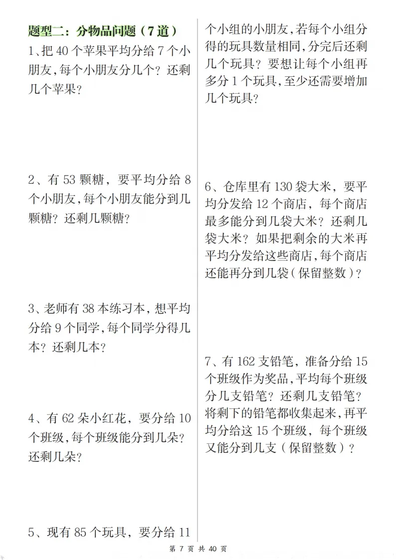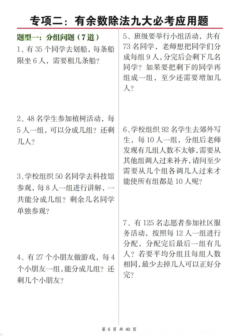 二年级孩子有余数除法、混合运算总出错?这份八大专项合集太实用!涵盖有余数除法、混合运算、租船问题等重点,题型由浅入深。孩子每天练习,能熟练掌握运算逻辑和解题技巧,家长不用额外讲解,轻松助力数学进阶~