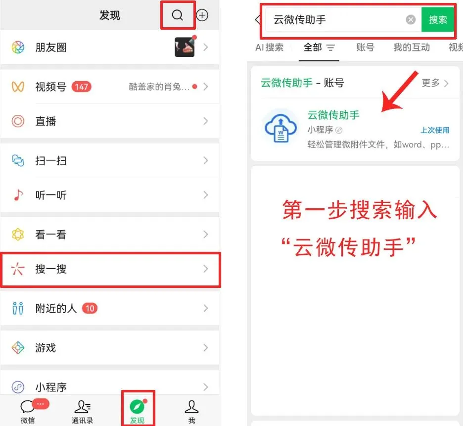 在微信首页搜索“云微传助手”,进入小程序。