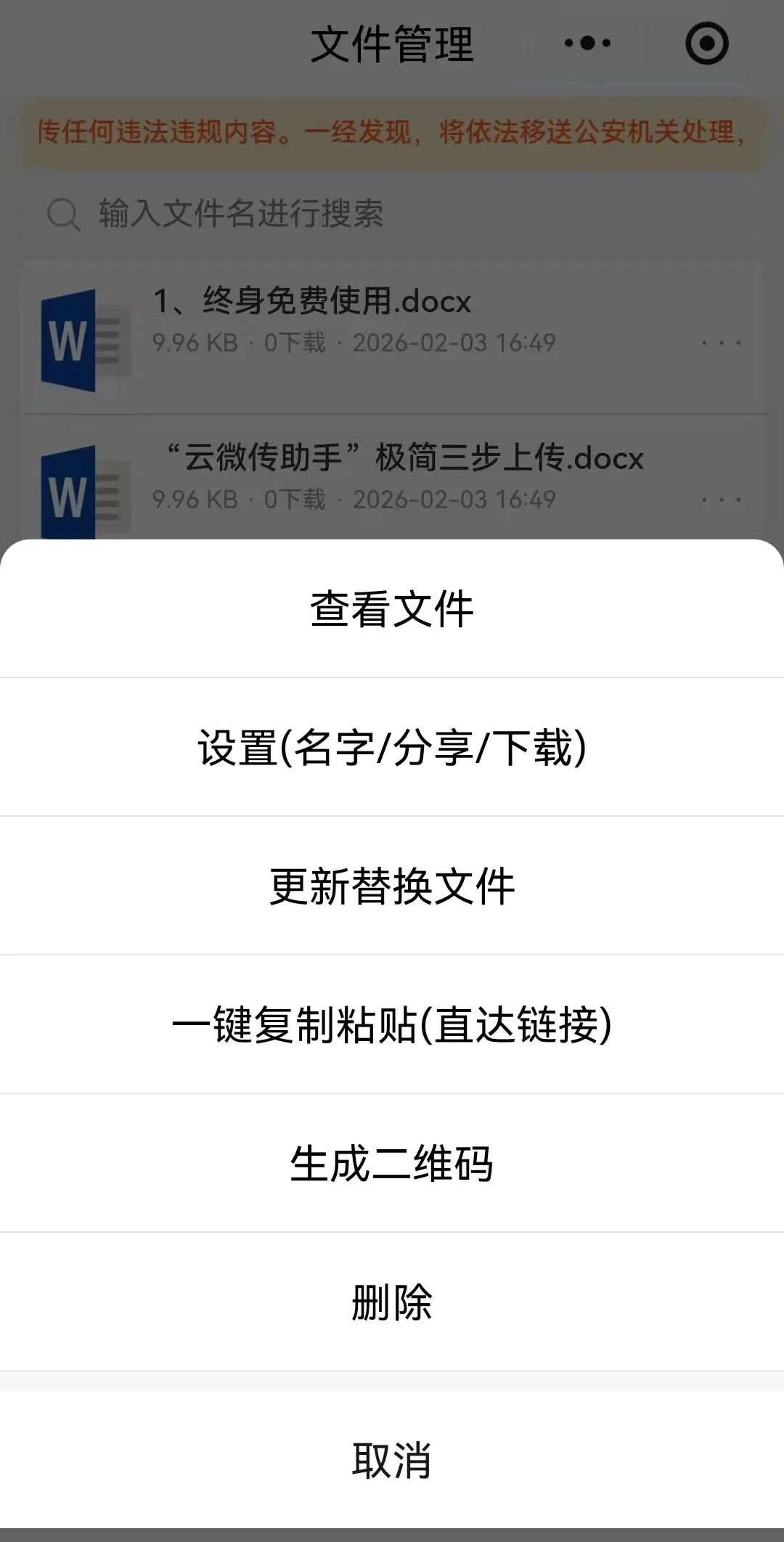 体验流畅:粉丝点击链接后直接在微信小程序中打开/下载文件,无需跳转其他应用