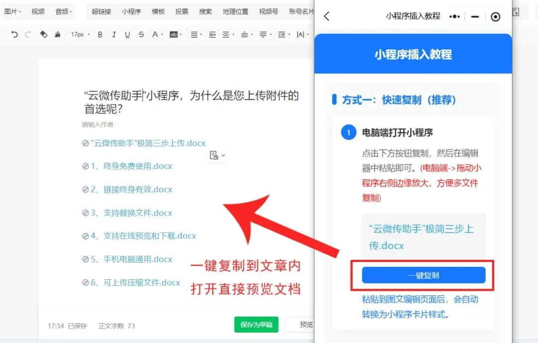 操作简单:三步即可完成文件上传和链接插入