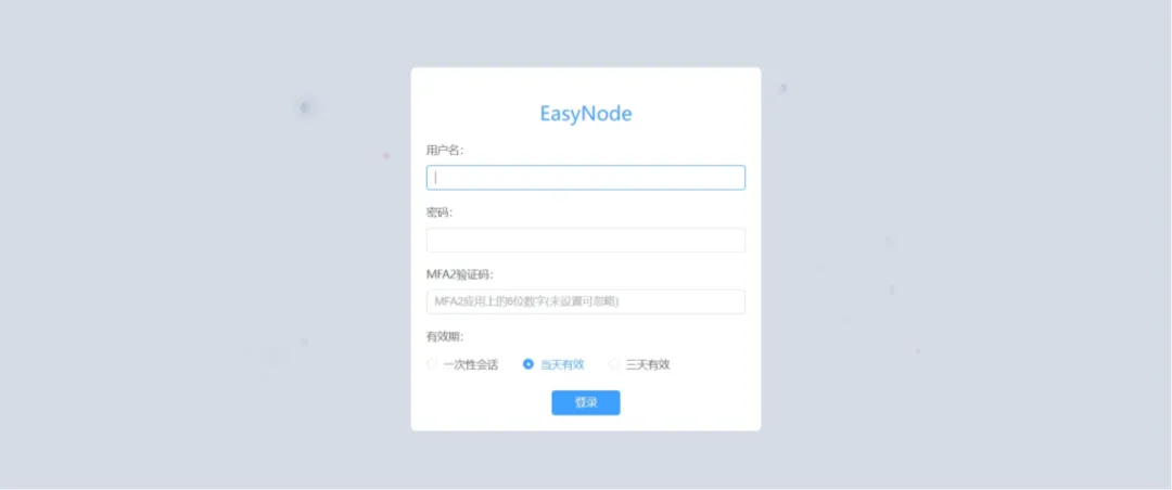 # docker compose快速部署# 1. 创建easynode目录mkdir -p /root/easynode && cd /root/easynode# 2. 下载docker-compose.yml文件wget https://git.221022.xyz/https://raw.githubusercontent.com/chaos-zhu/easynode/main/docker-compose.yml# 3. 启动服务docker compose up -d