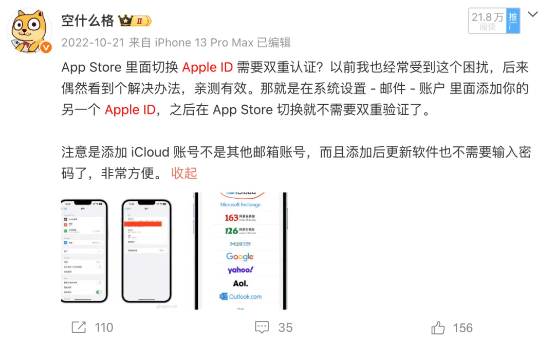 最后分享一个我多年前在微博分享的经验:如果你是多 Apple ID 切换用户,需要更新不同商店的 App 的时候,经常需要弹窗输入对应商店的账号密码。