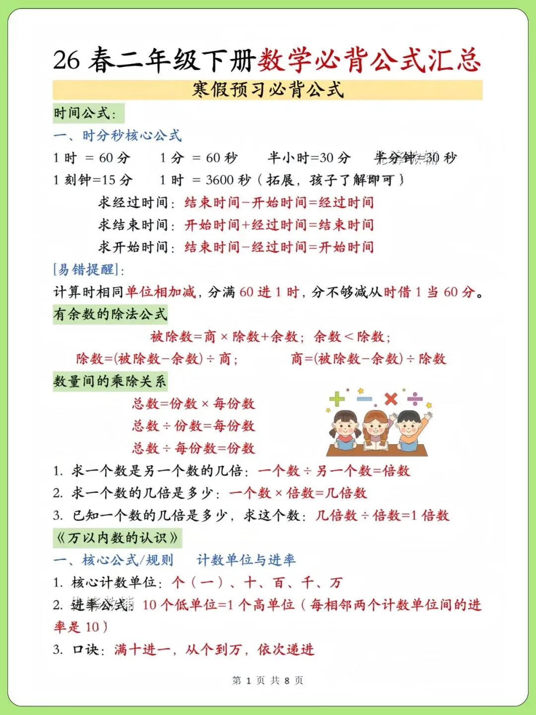 大家好,我是蒂尼江,今天分享的是二下必背数学公式寒假不背开学掉队,关注我,每天持续分享更多的优质学习资料。