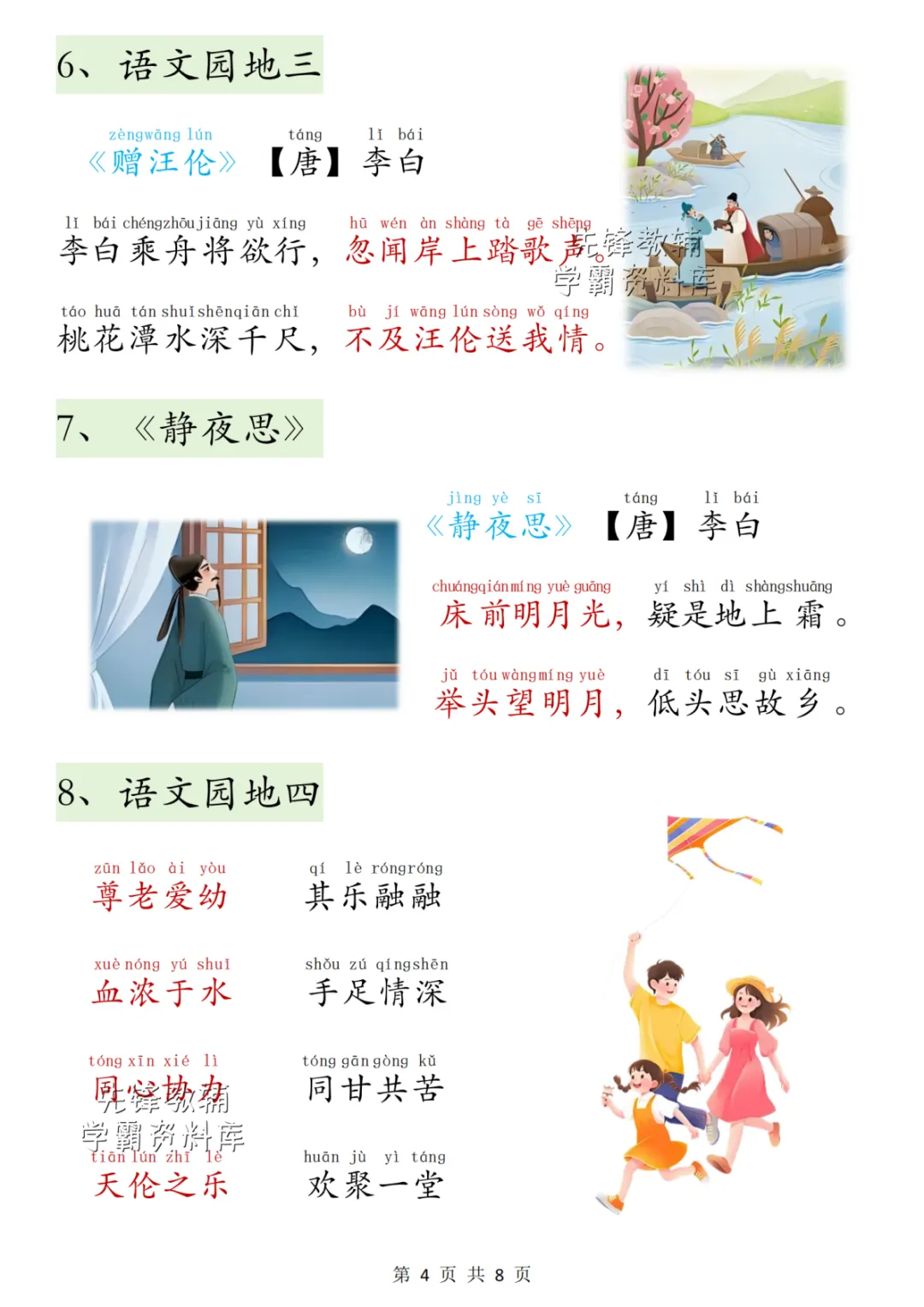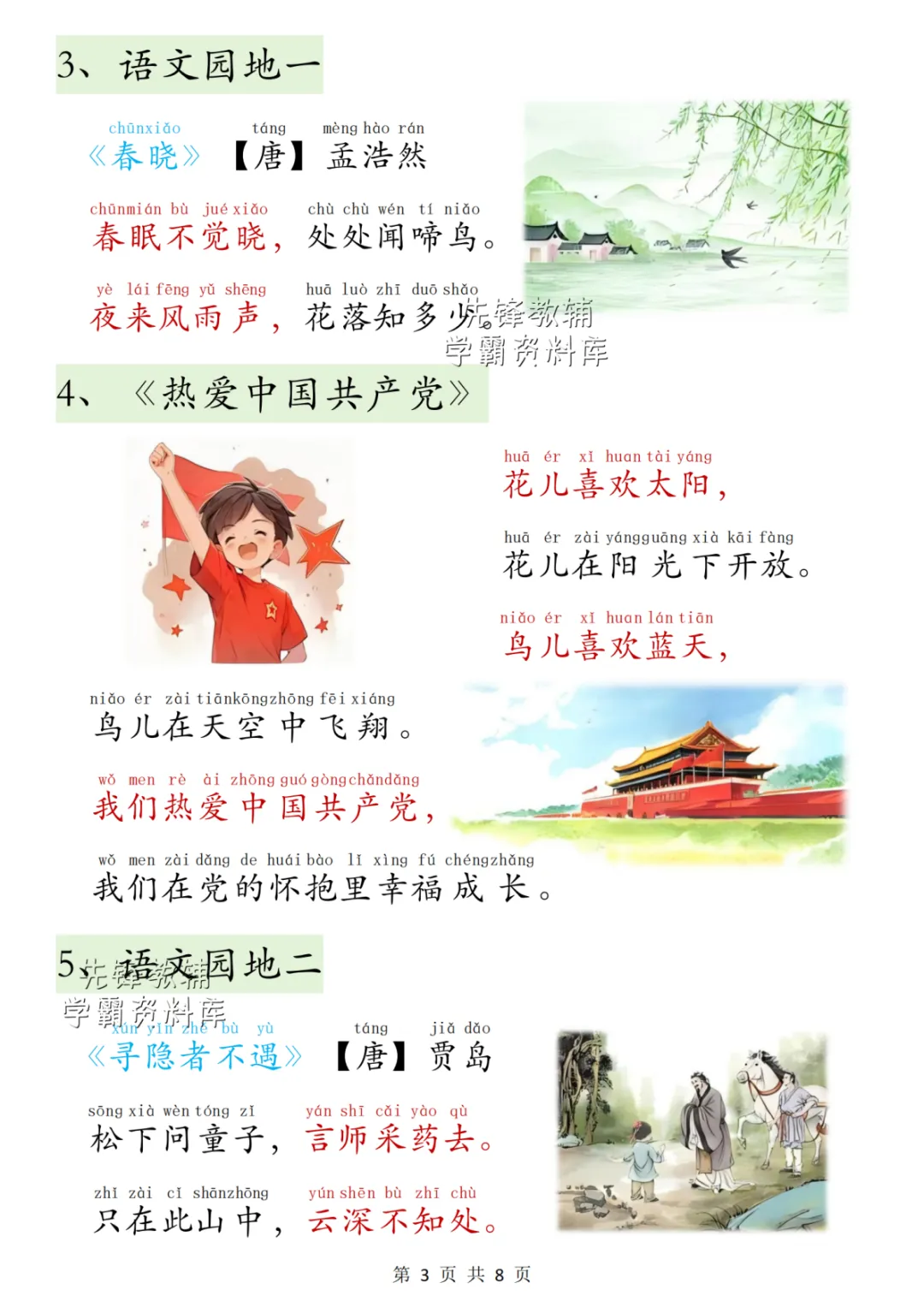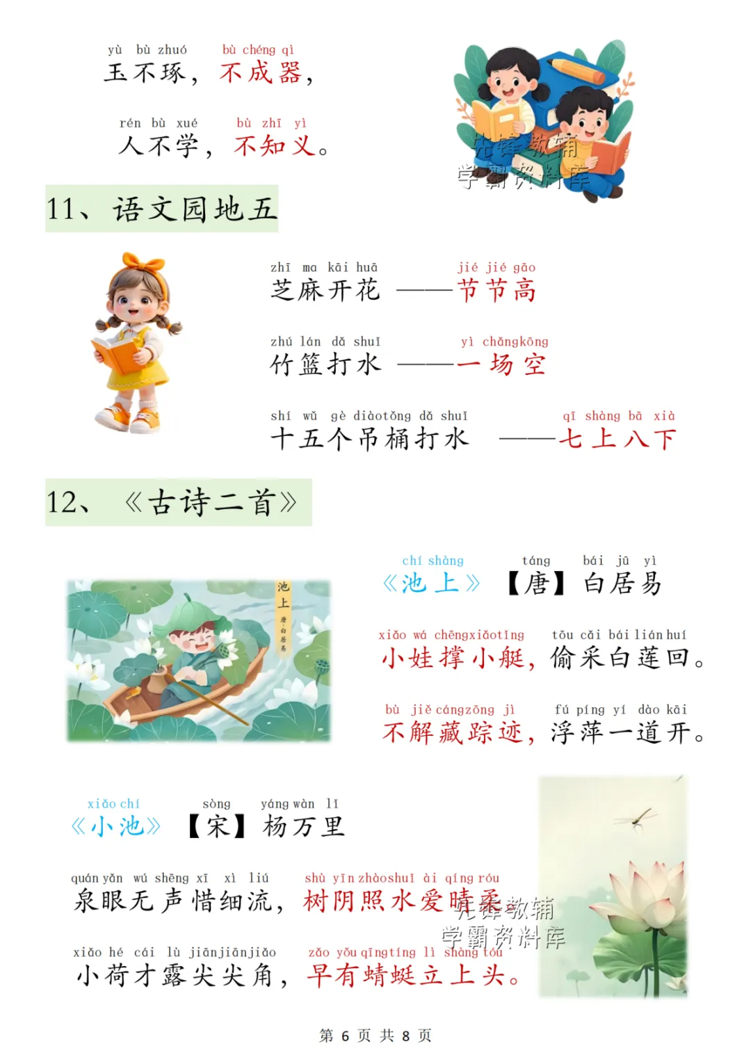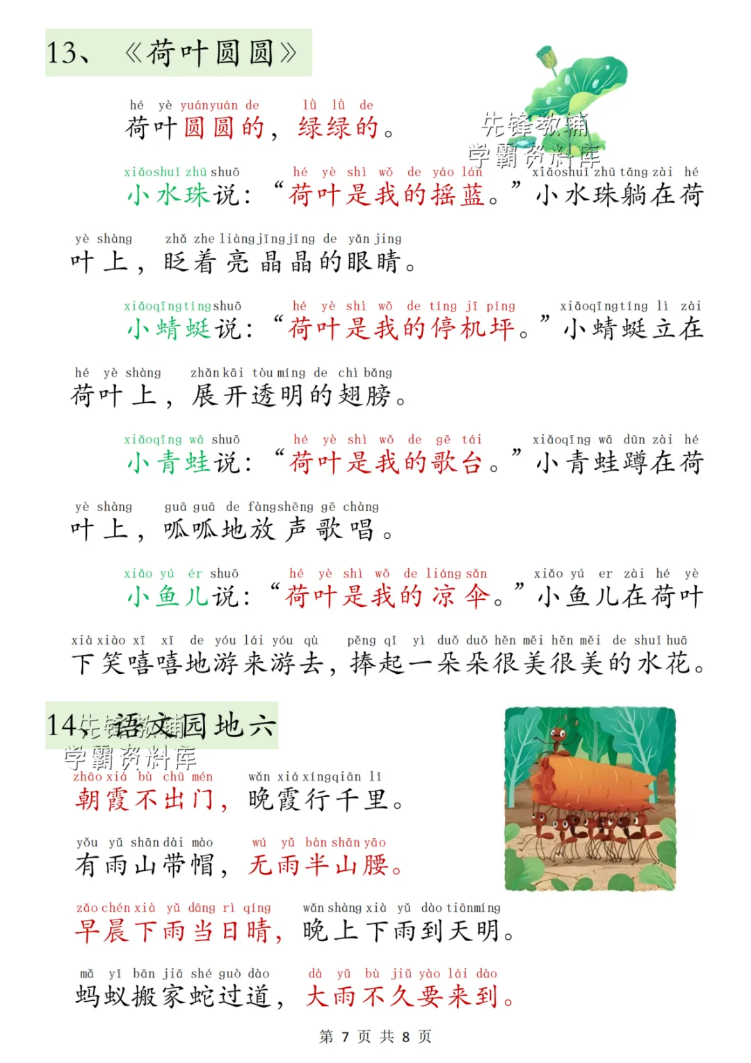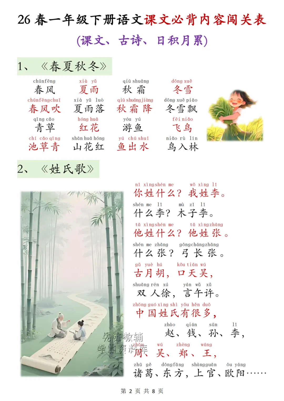2026年春一年级下册语文全册预习知识点汇总22页电子版可打印