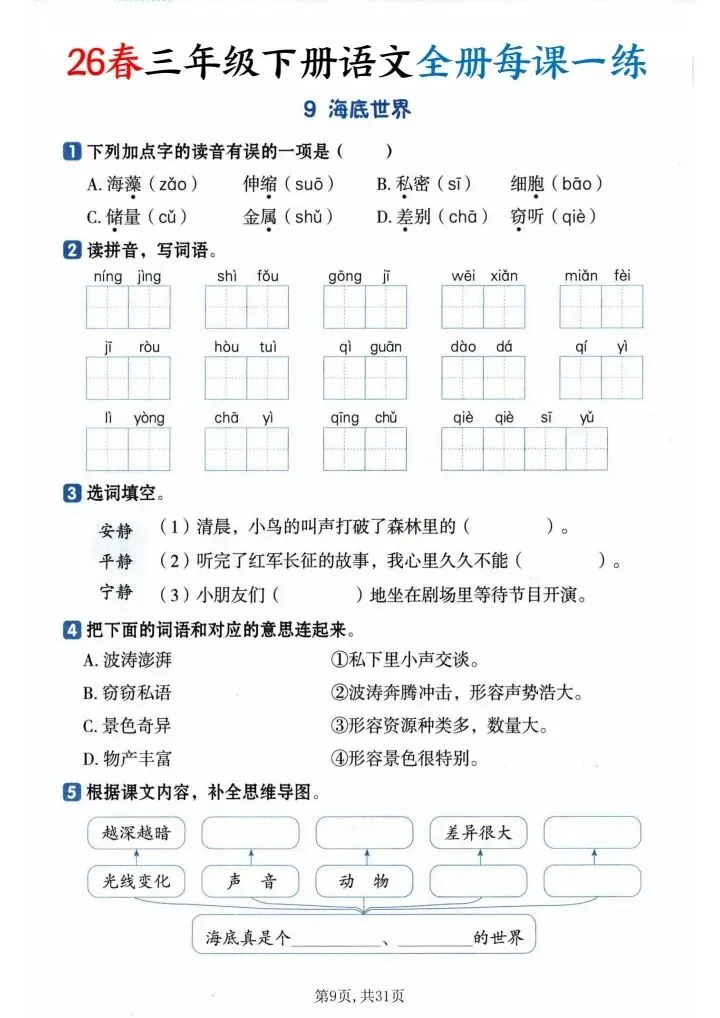 26春三年级下册语文全册每课一练.电子版可下载打印!