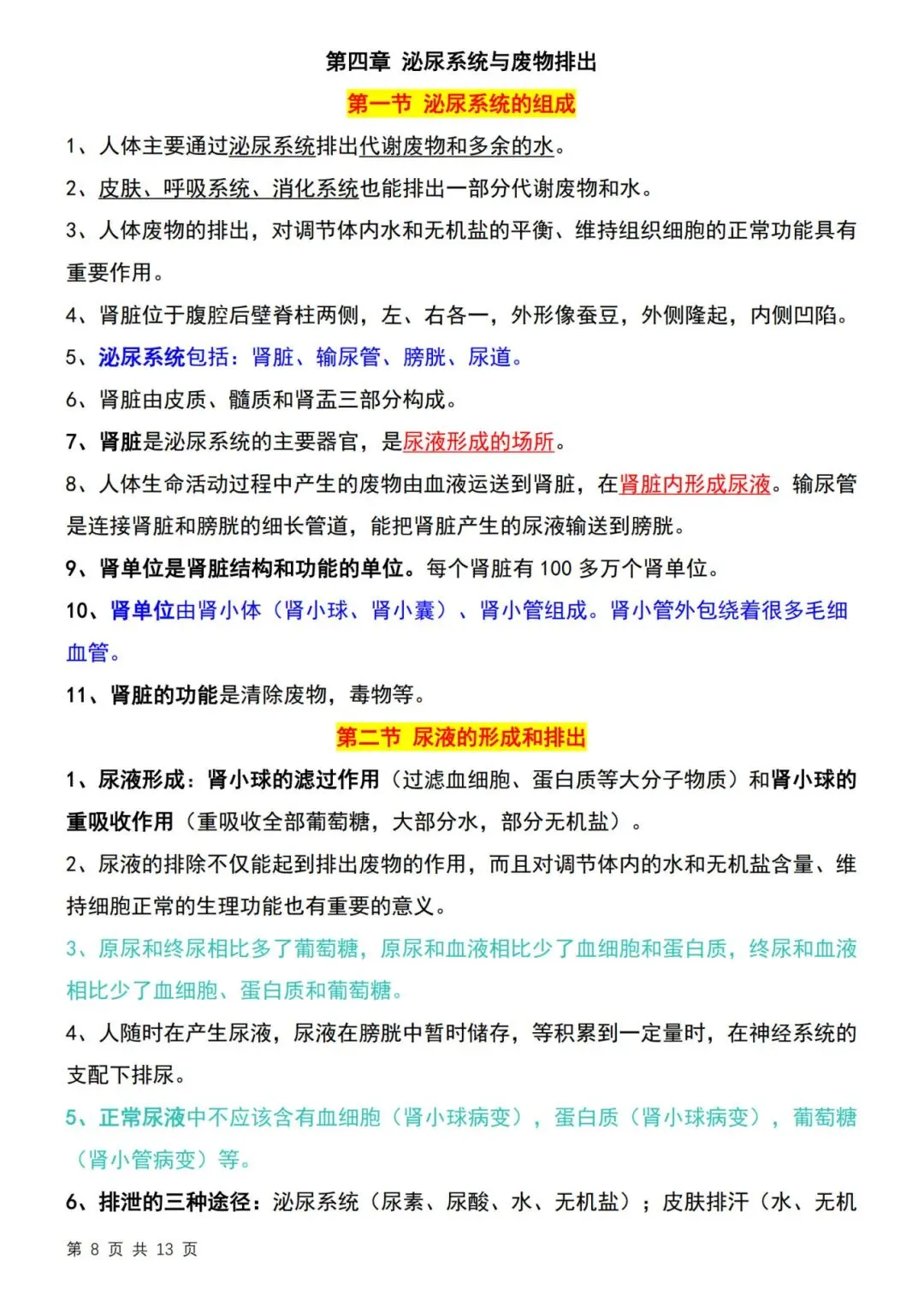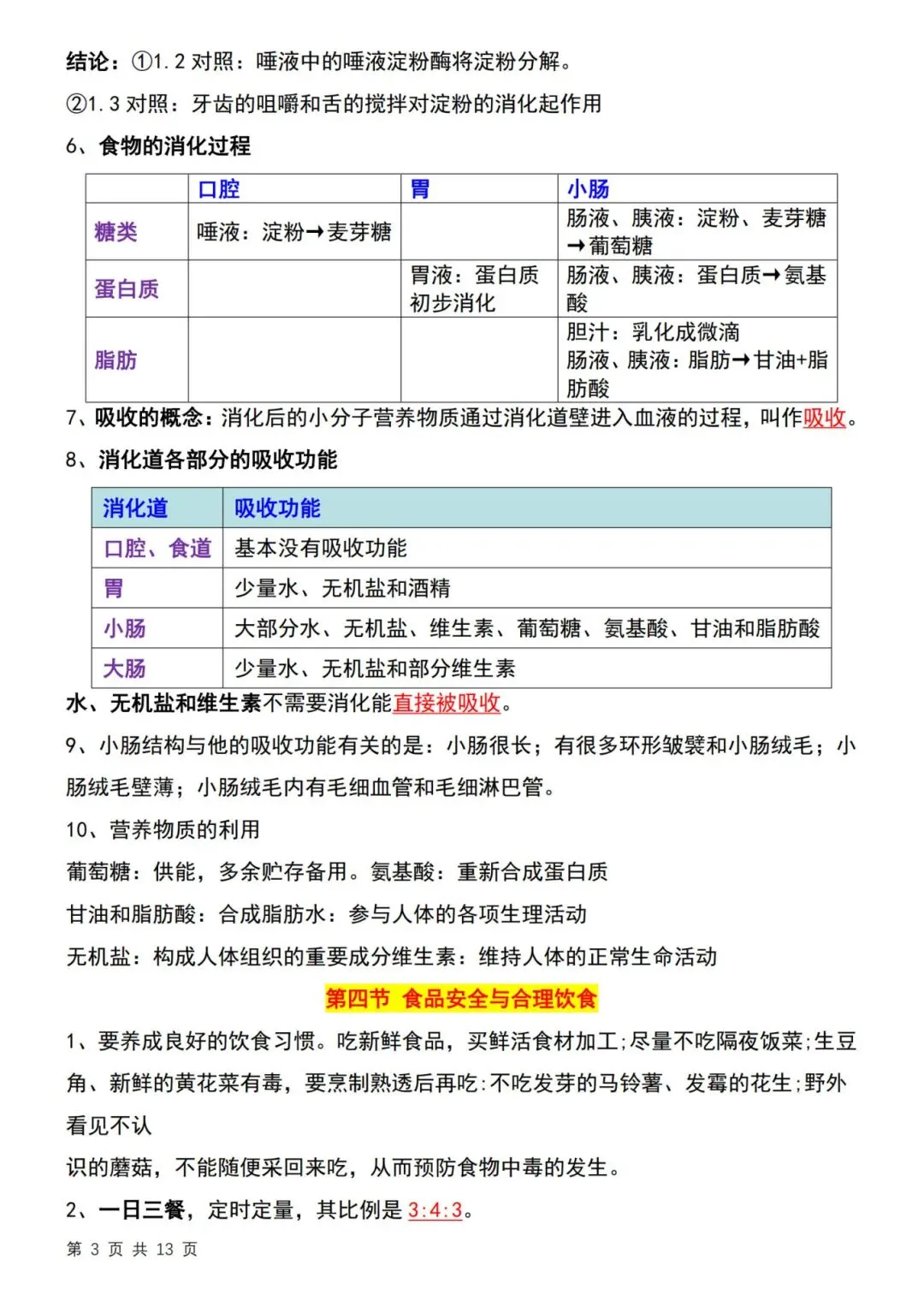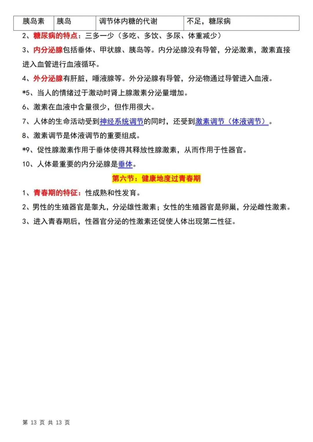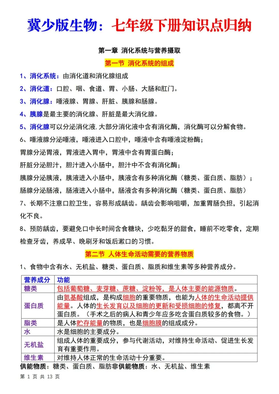 26春七年级下册冀少版【生物知识点归纳】|完整电子版可打印
