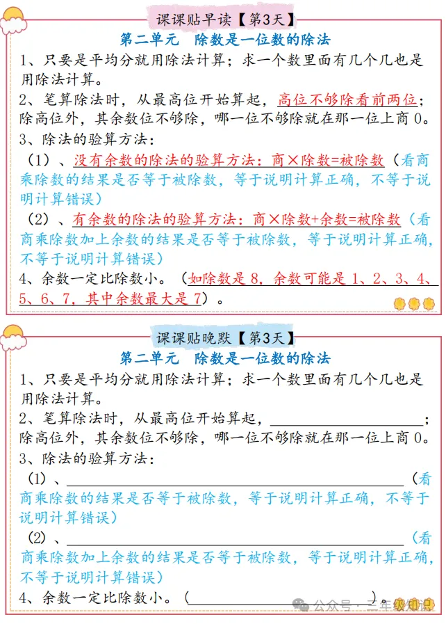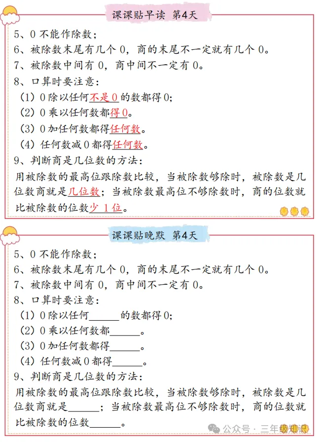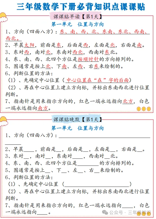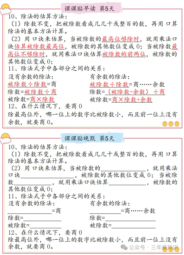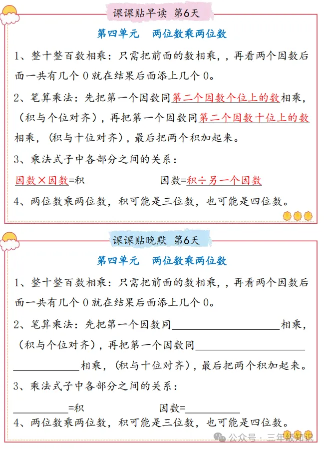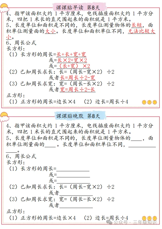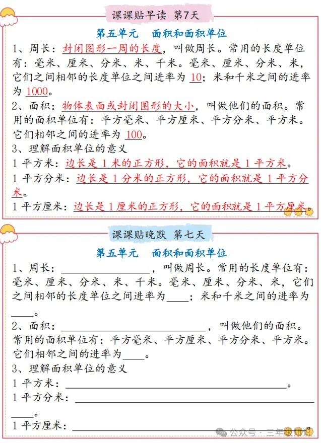 人教版三年级下册数学必背知识点课课贴,可下载打印