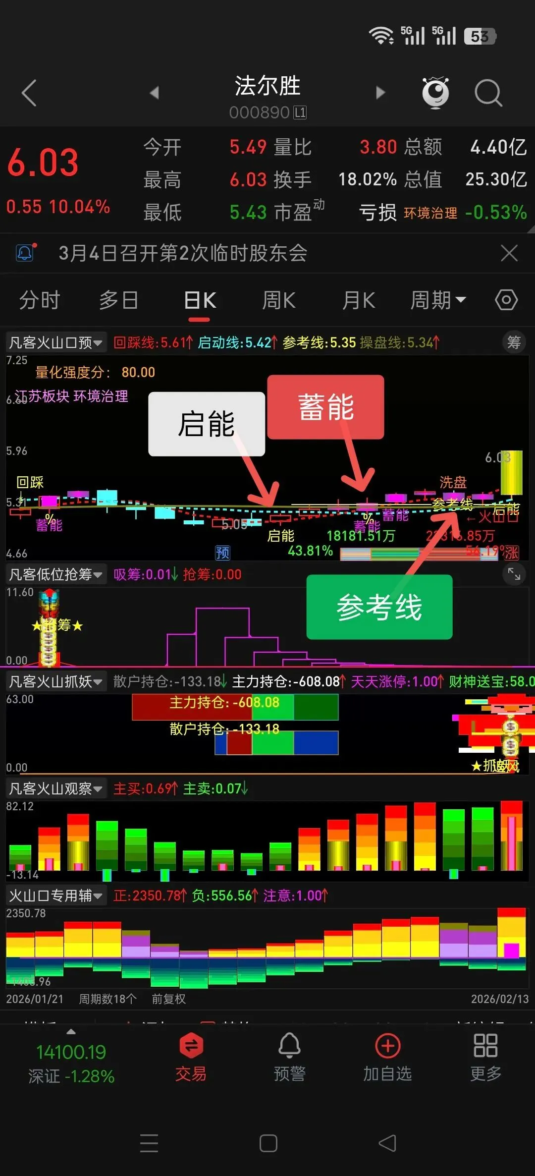 DRAWTEXT(ZZ,MOBV/10,’高’),COLORBLUE;
