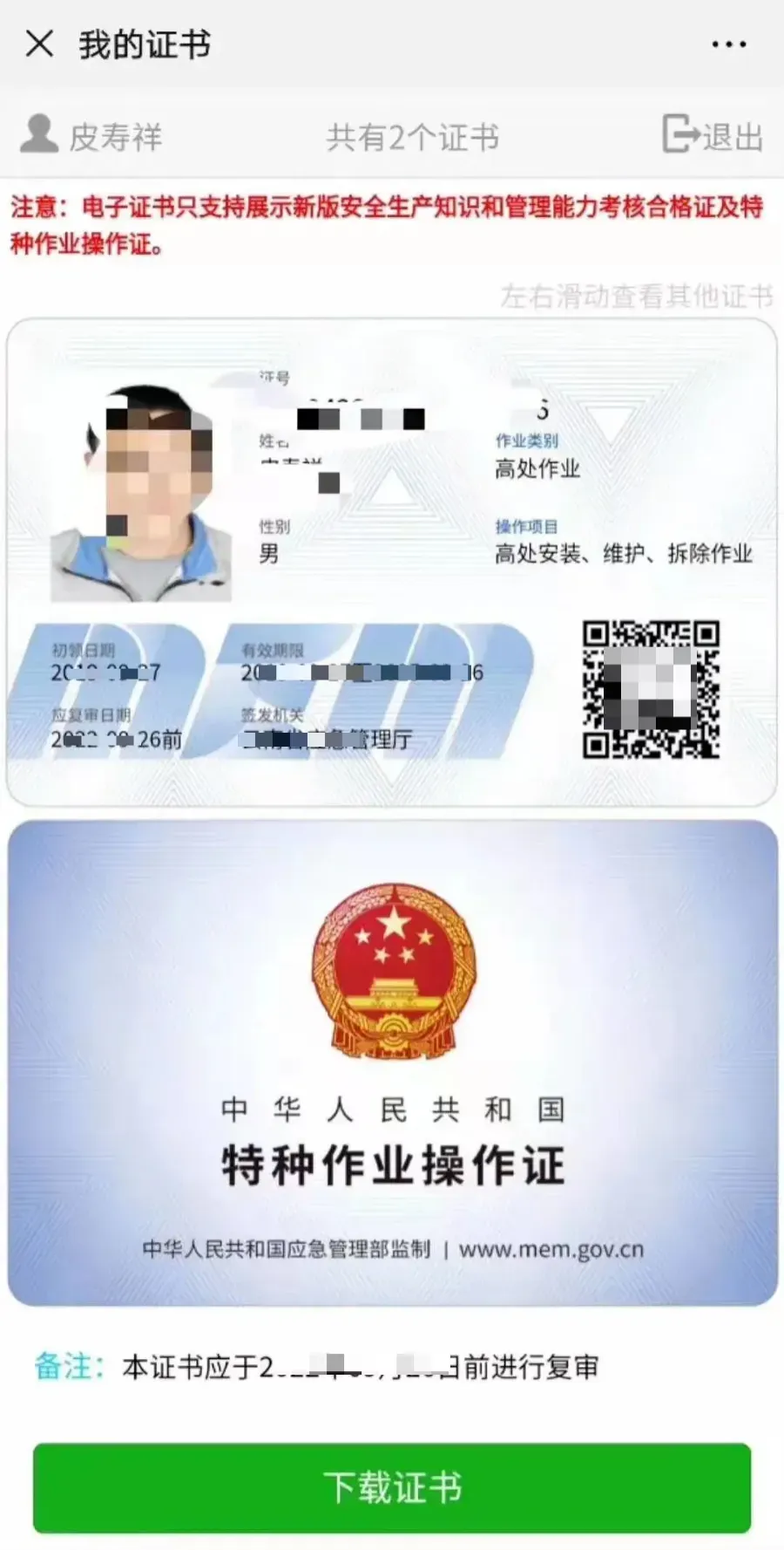 特种作业操作证书电子版证书查询下载流程