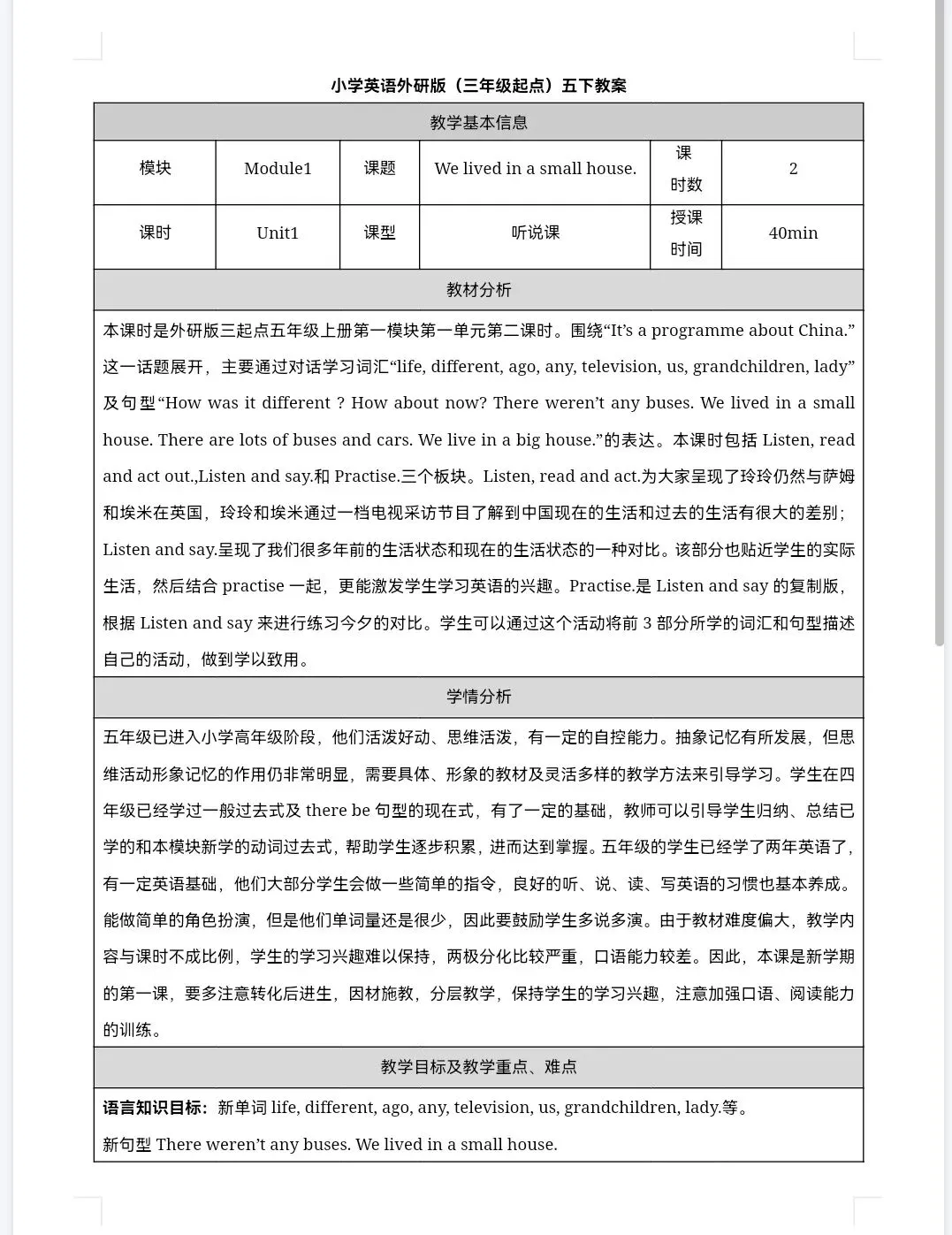 2026春 外研版 五年级下册英语【全册各单元备课教案+PPT课件】可下载打印!