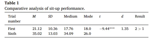 运动表现(体力值)高歌猛进:从第1次的平均21.12次大幅跃升至第6次的35.02次(效应量d=1.35,呈现极高显著性) 。这完美验证了“练习幂律”,证明体感游戏在短期内大幅提升了身体素质 。