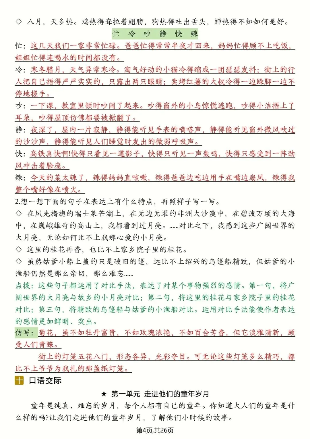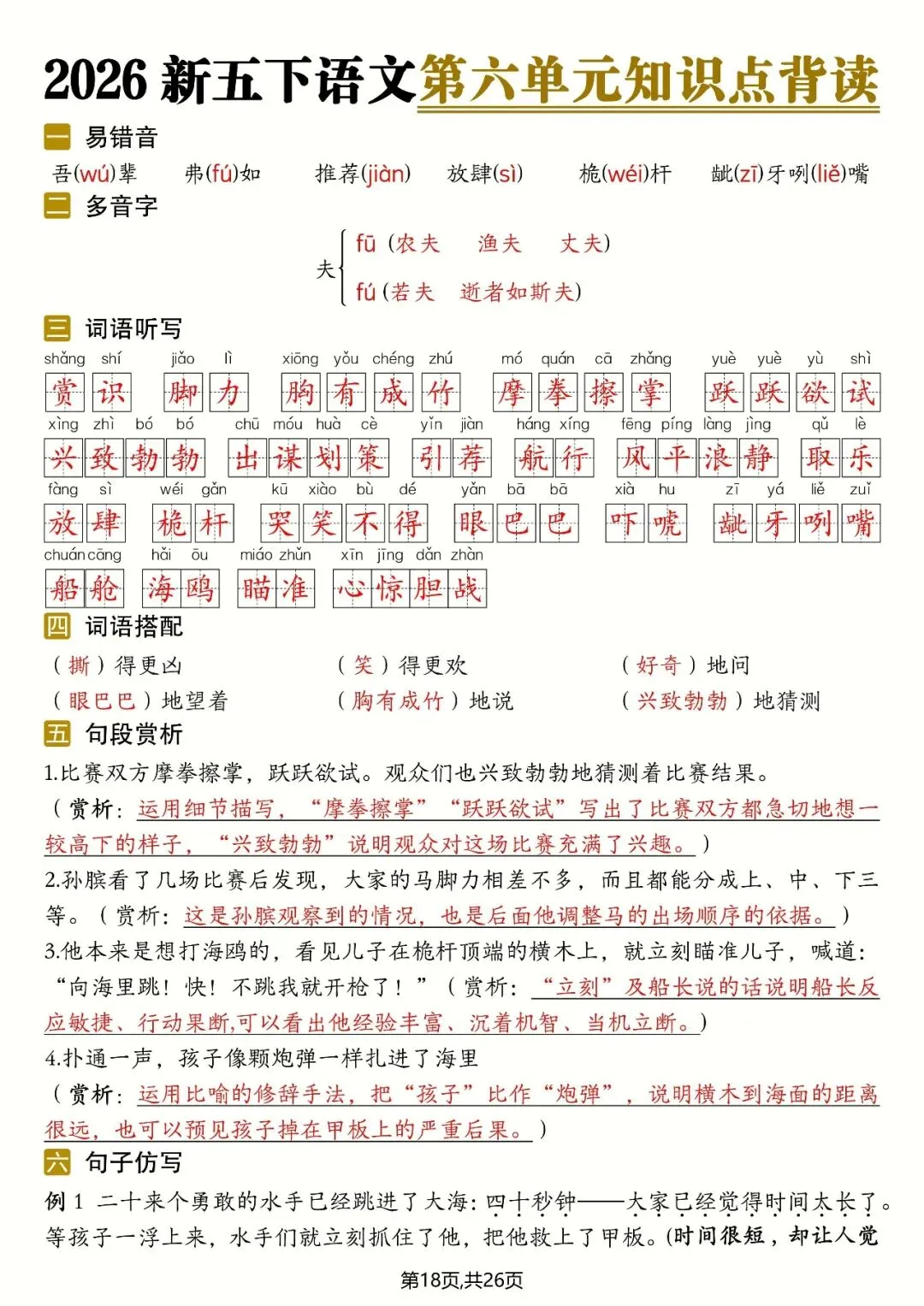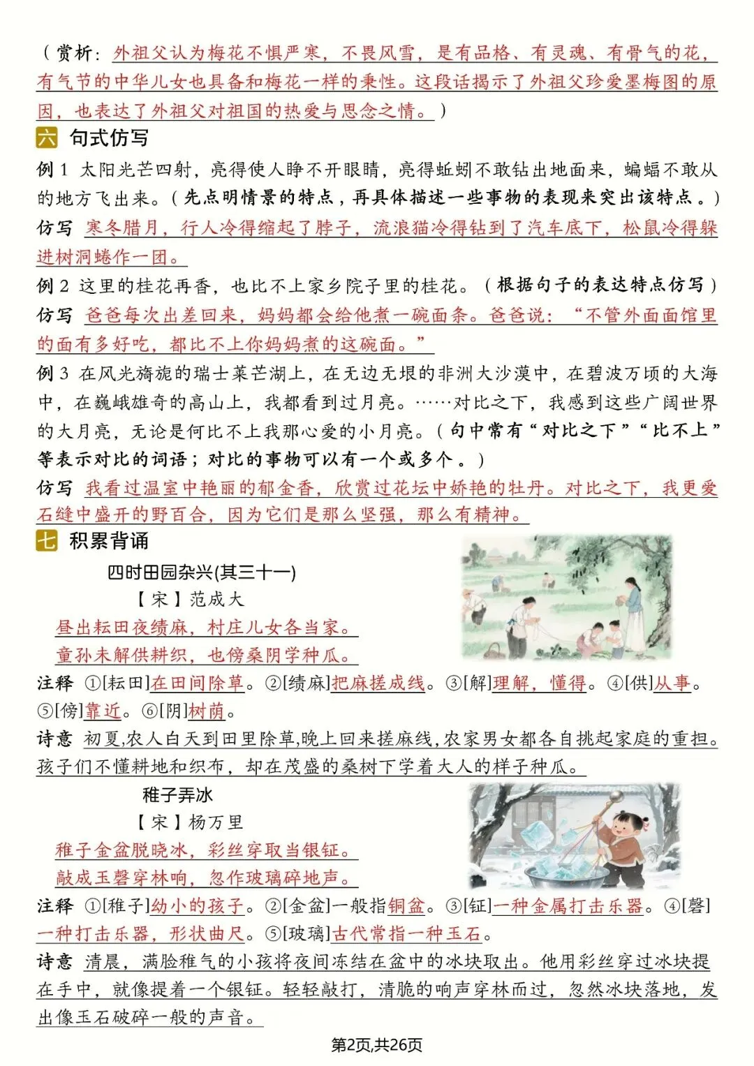 26春新五年级下册人教部编版语文《全册重点必背知识点汇总》(含课文中心思想+古诗文日积月累+高频考点)高清可打印