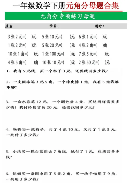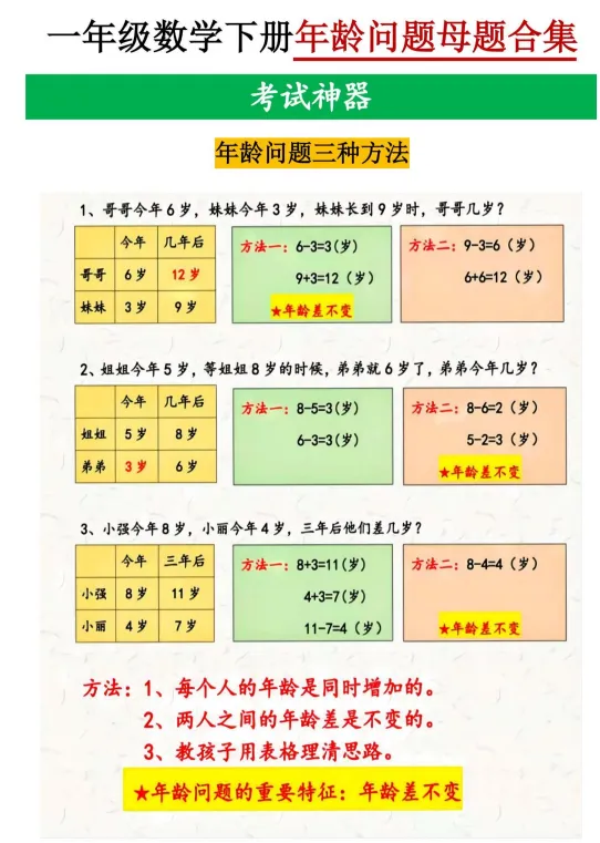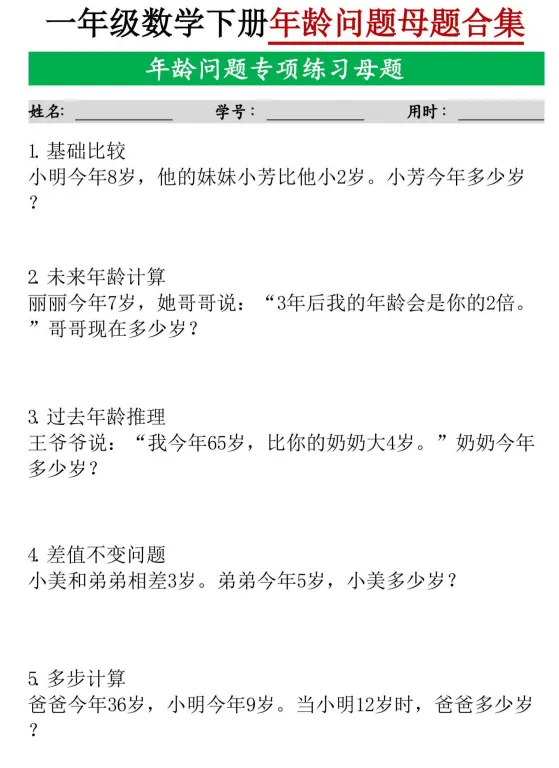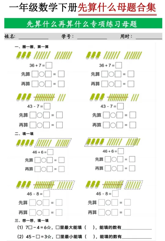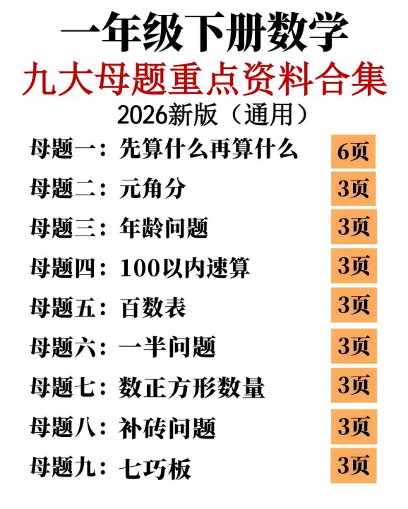 一年级下册数学九大母题合集,完整电子版可下载打印