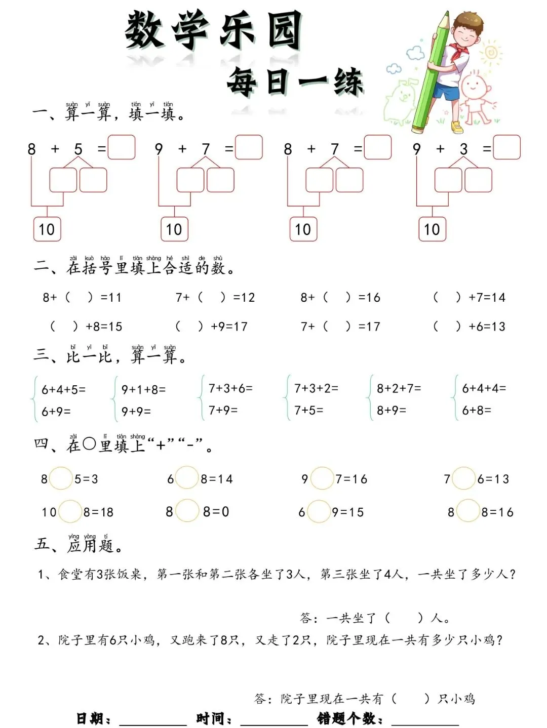 幼小衔接数学乐园每日一练(61天),可免费下载打印完整电子版.