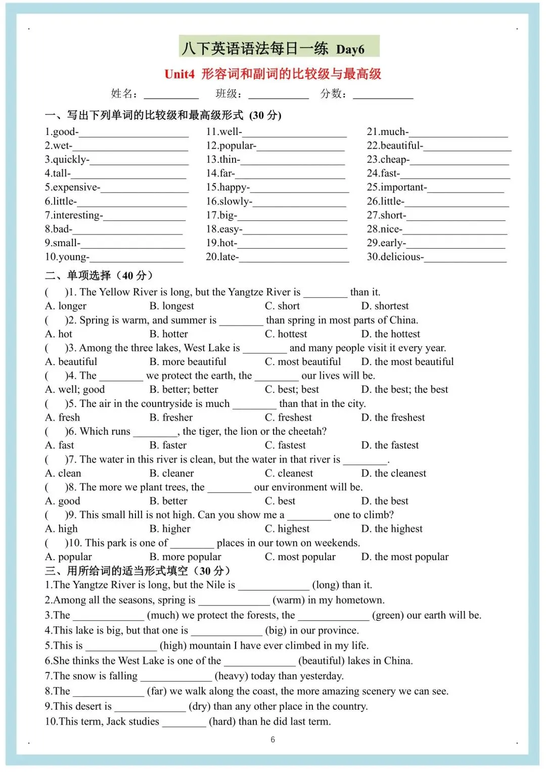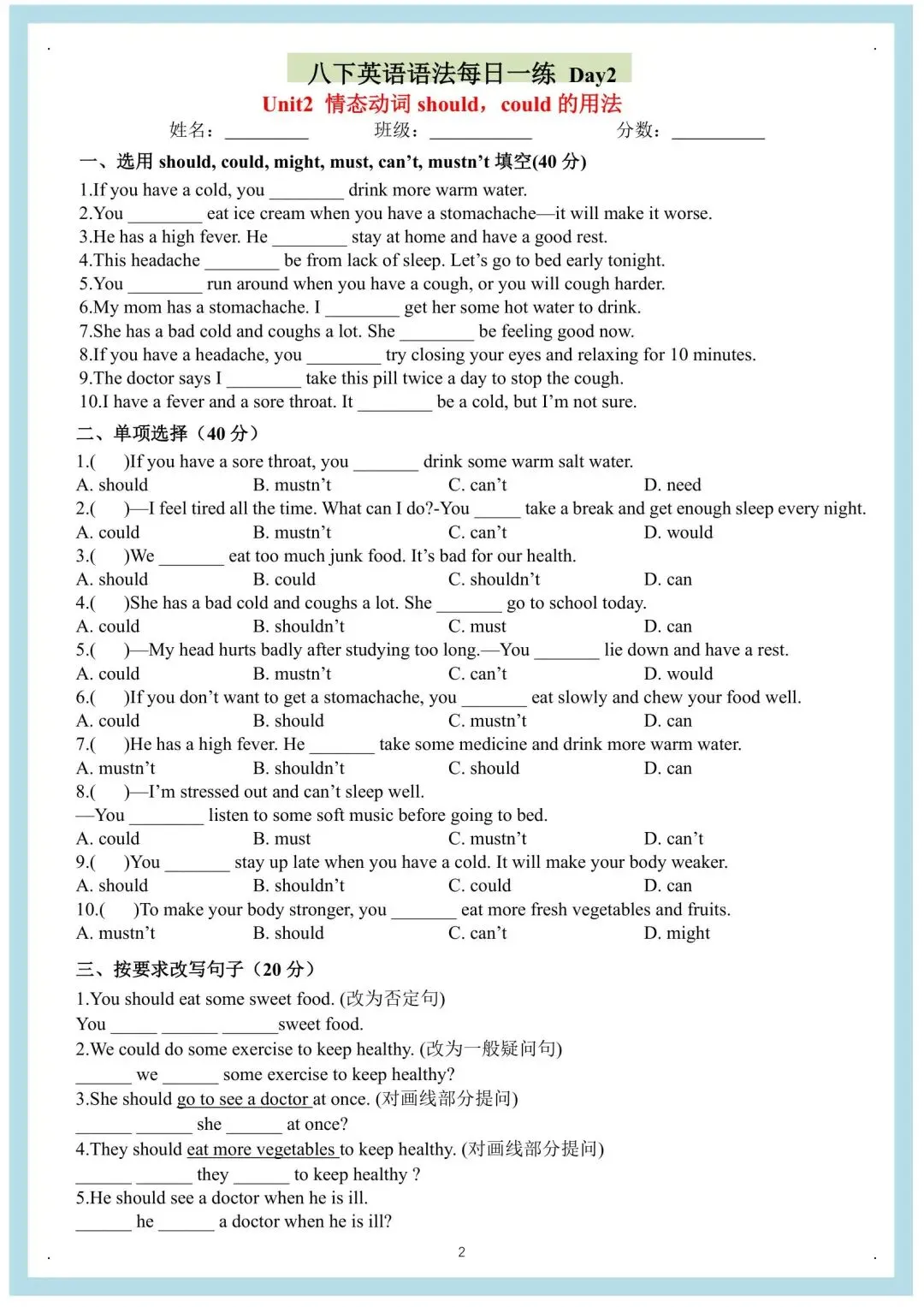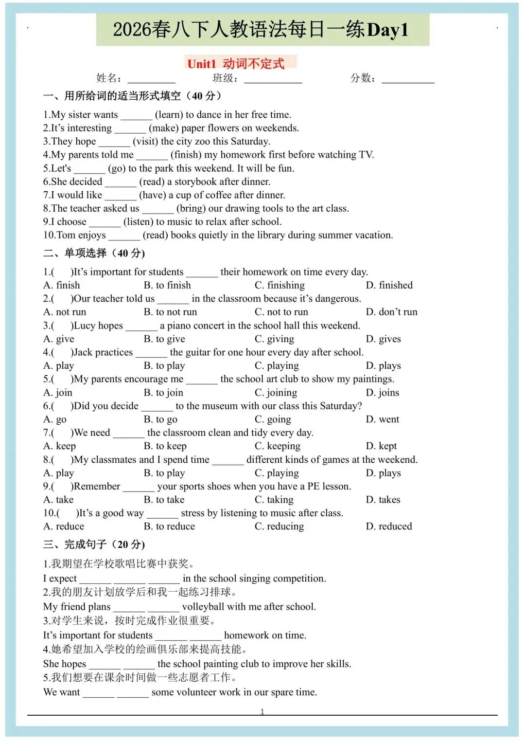 八年级下册英语人教版每日一练(电子版可打印)