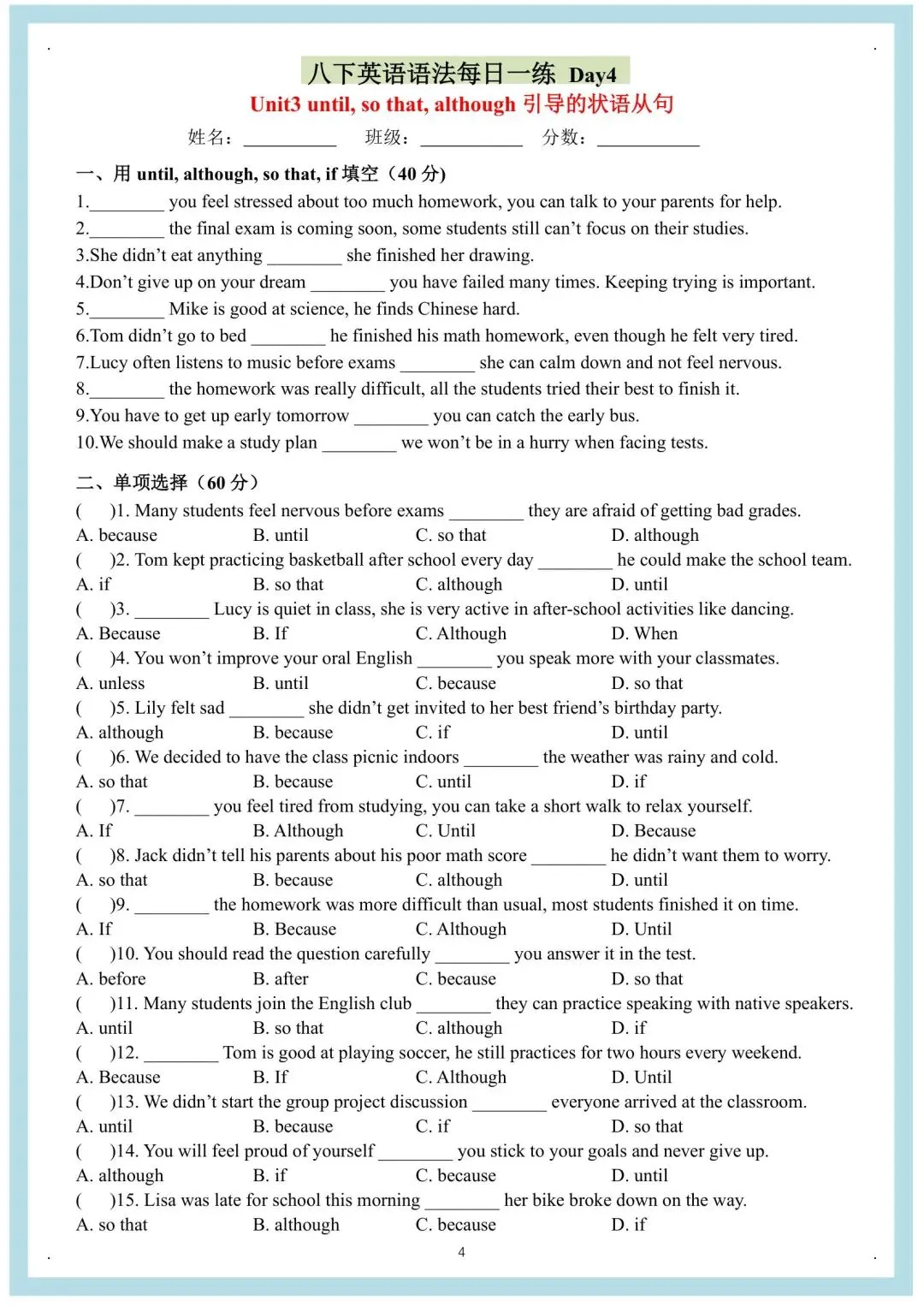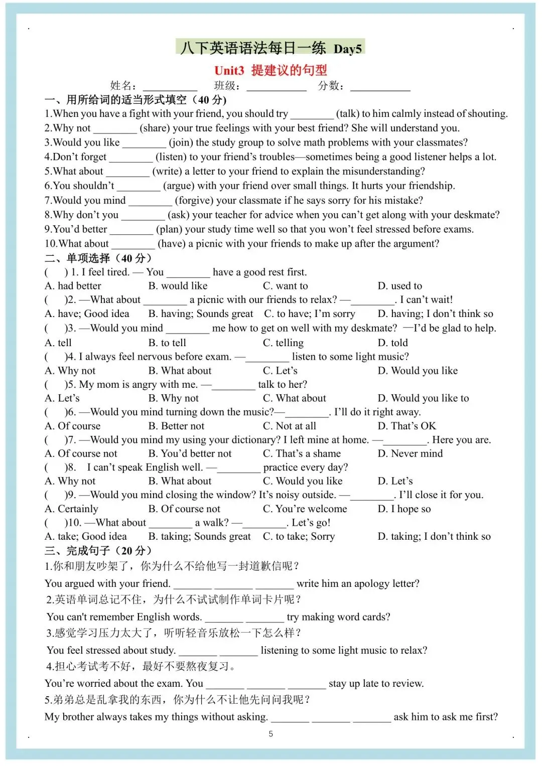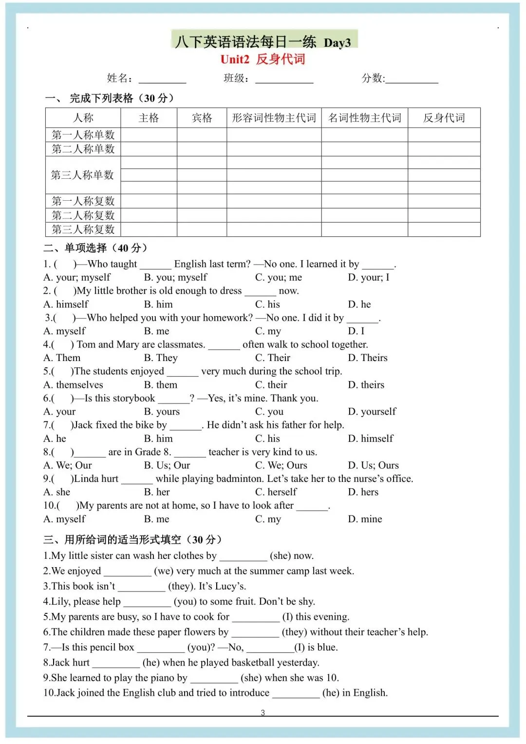 八年级下册英语人教版每日一练(电子版可打印)