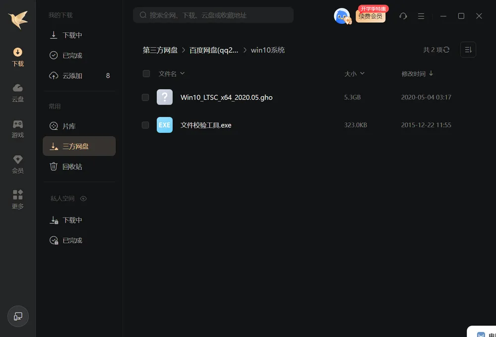 完成第三方网盘授权后,就能在迅雷客户端内直接查看并下载所有资源了。 小天测试时添加的是百度网盘,成功添加之后,就能在迅雷网盘里直接管理百度网盘的各类资源。