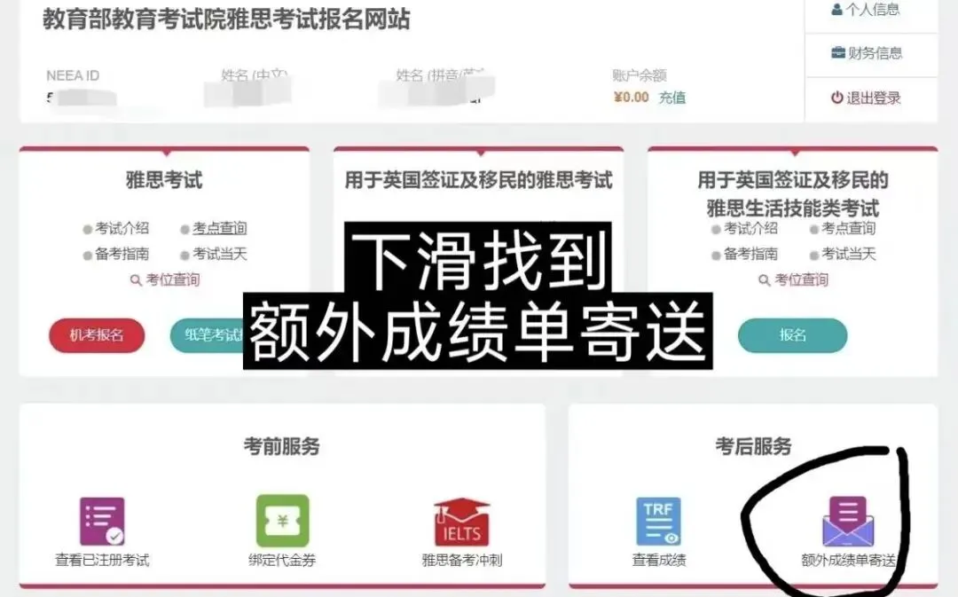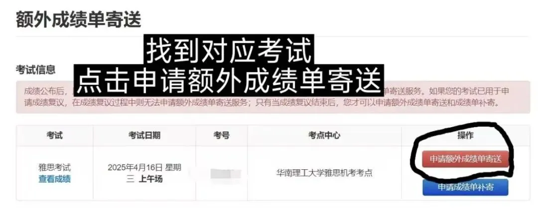 在页面底部找到 “额外成绩单寄送” 按钮并点击。