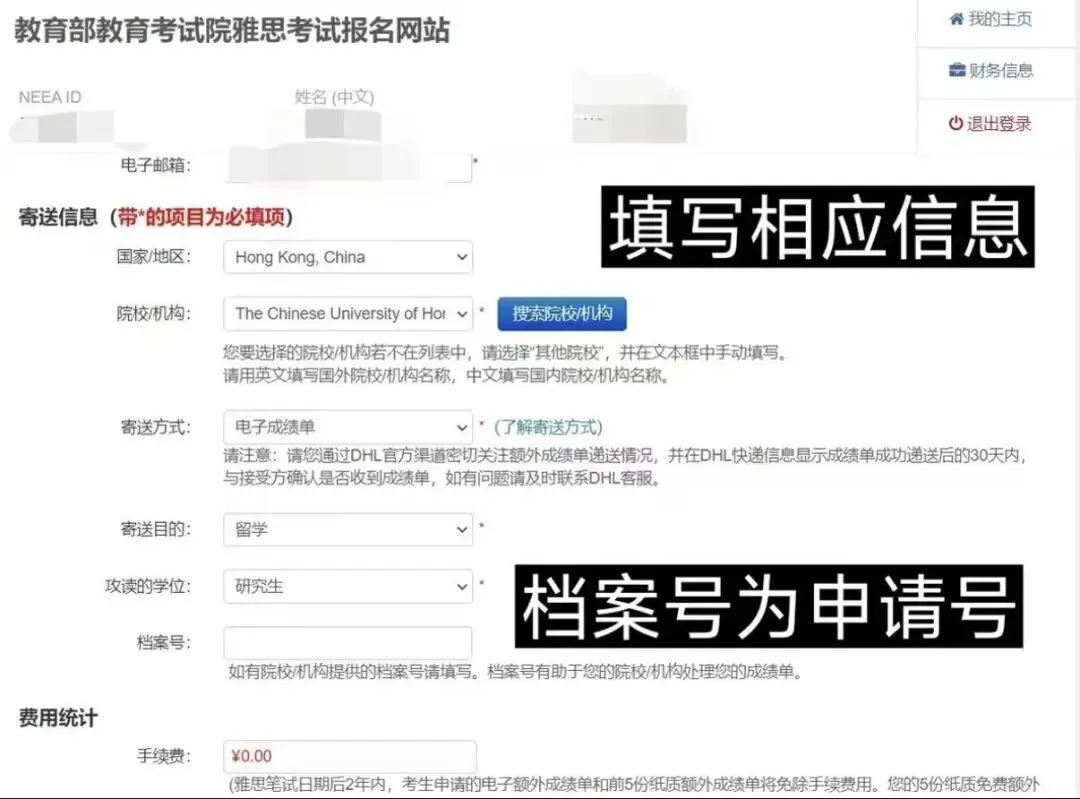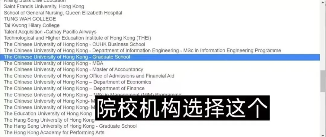按提示填写个人信息,并在院校列表中选择 “香港中文大学研究生院”,最后确认提交。