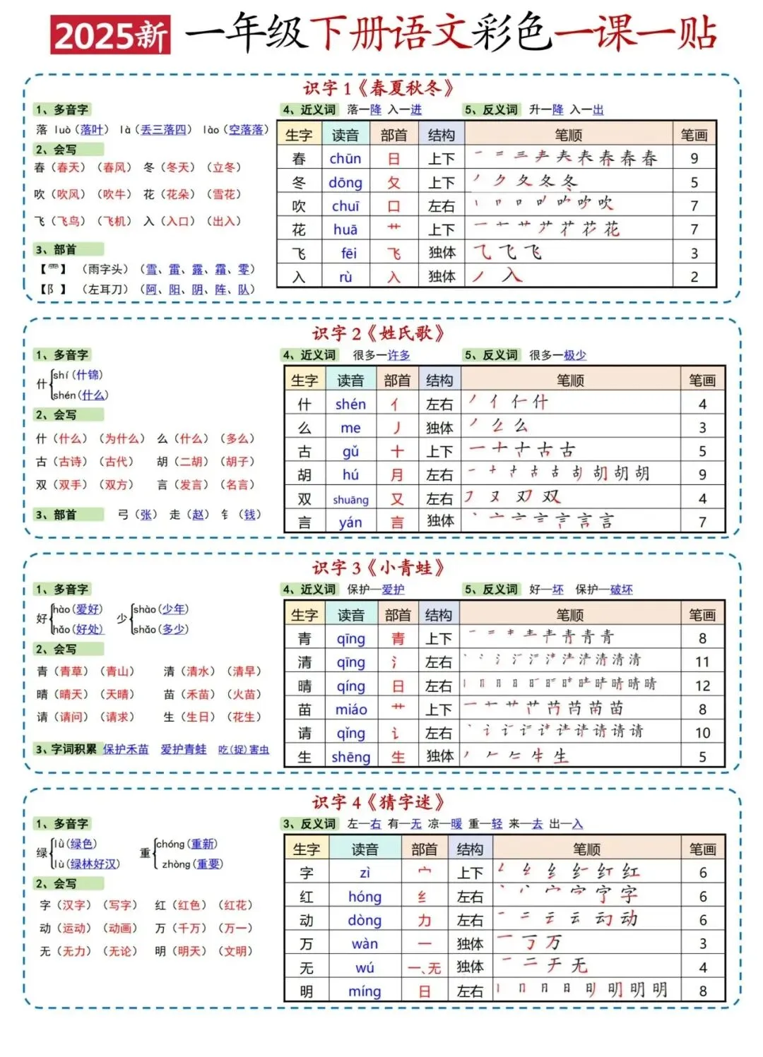 《1-6年级语文课课贴》