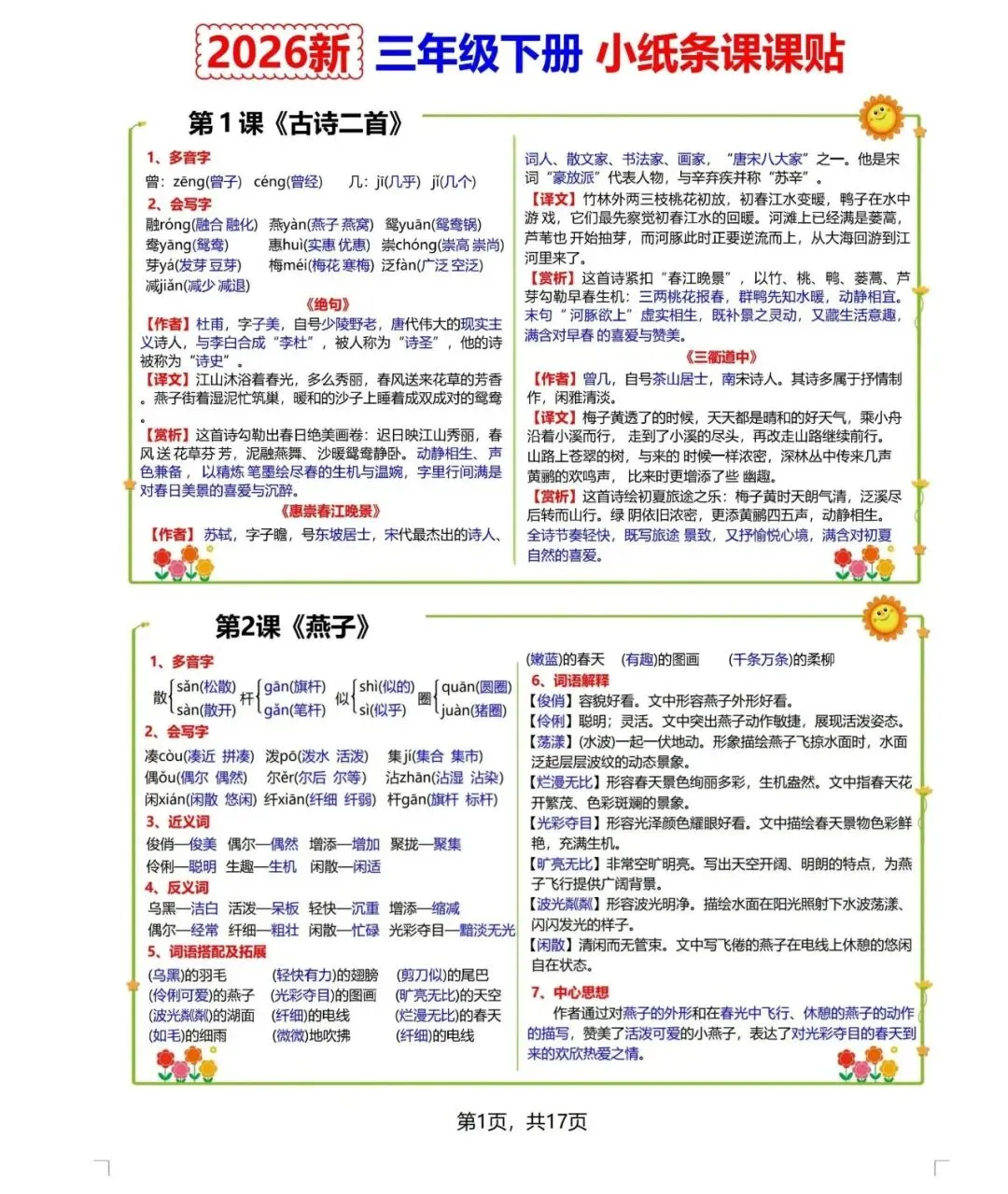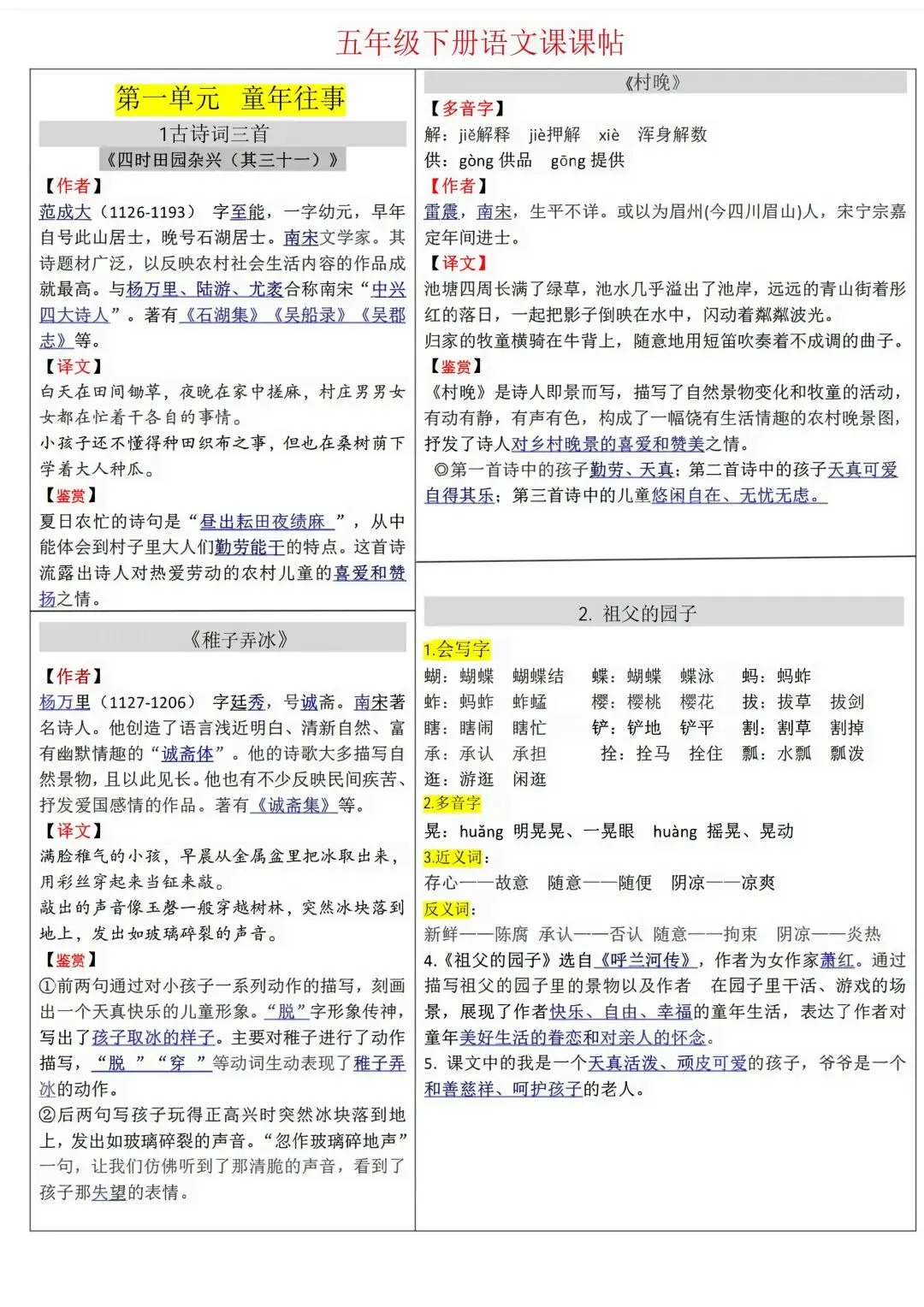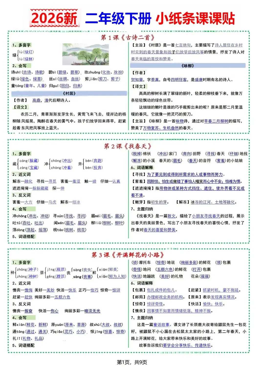 【课课贴】深圳1-6年级下册语文课课贴(可下载打印)