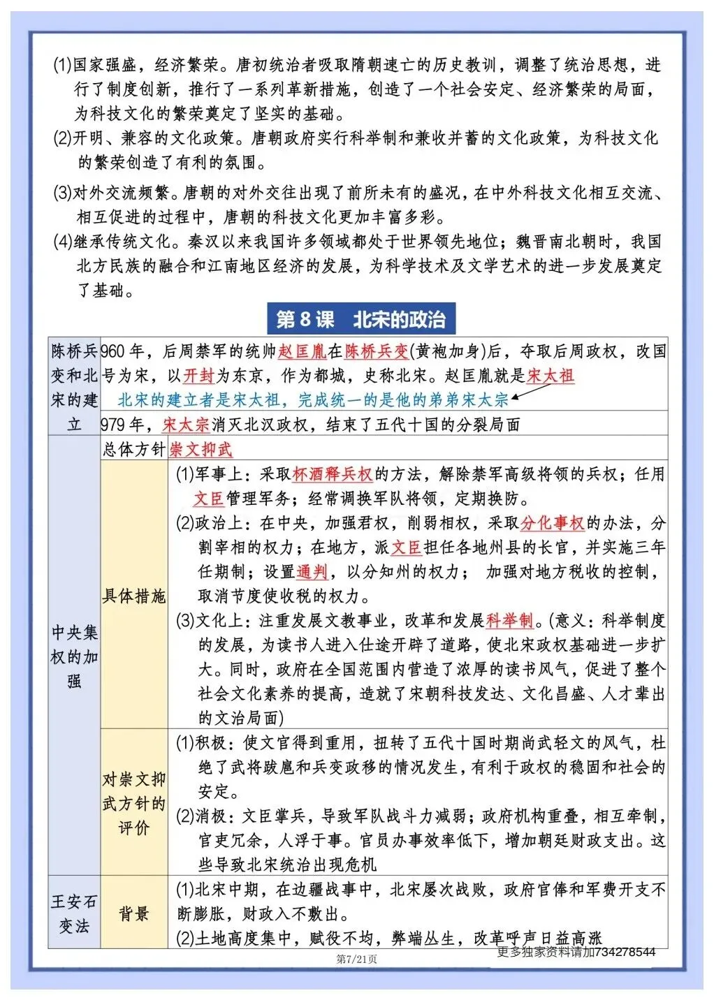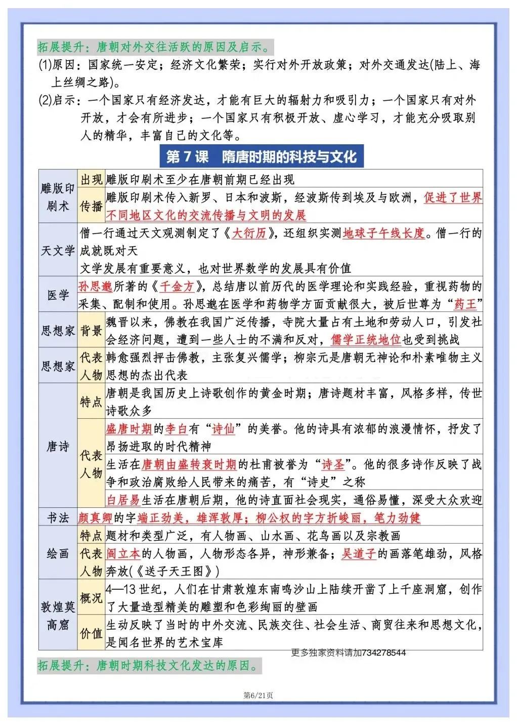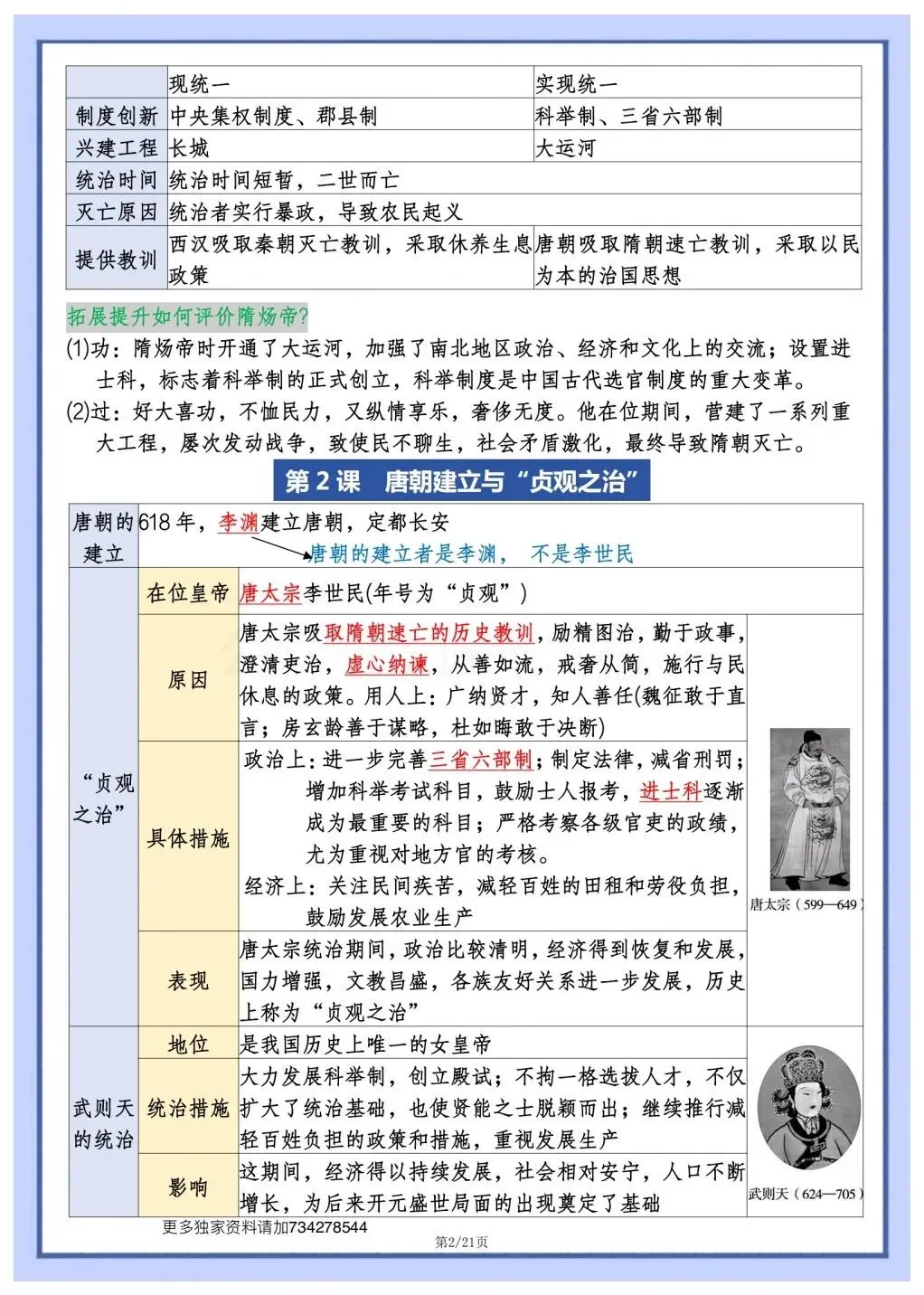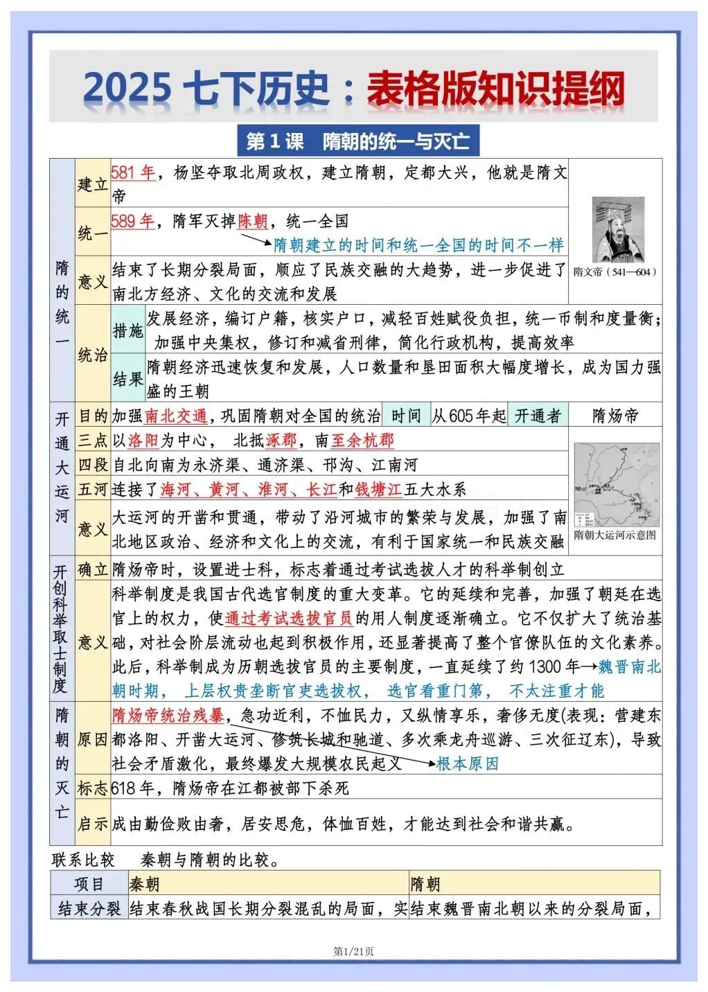 2026年春季新版七年级下册历史表格版知识提纲,可打印电子版!
