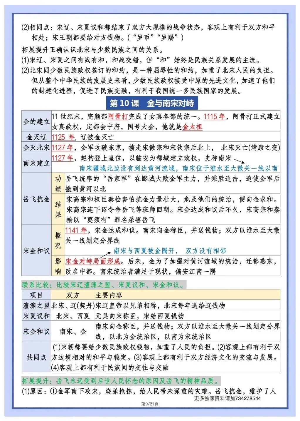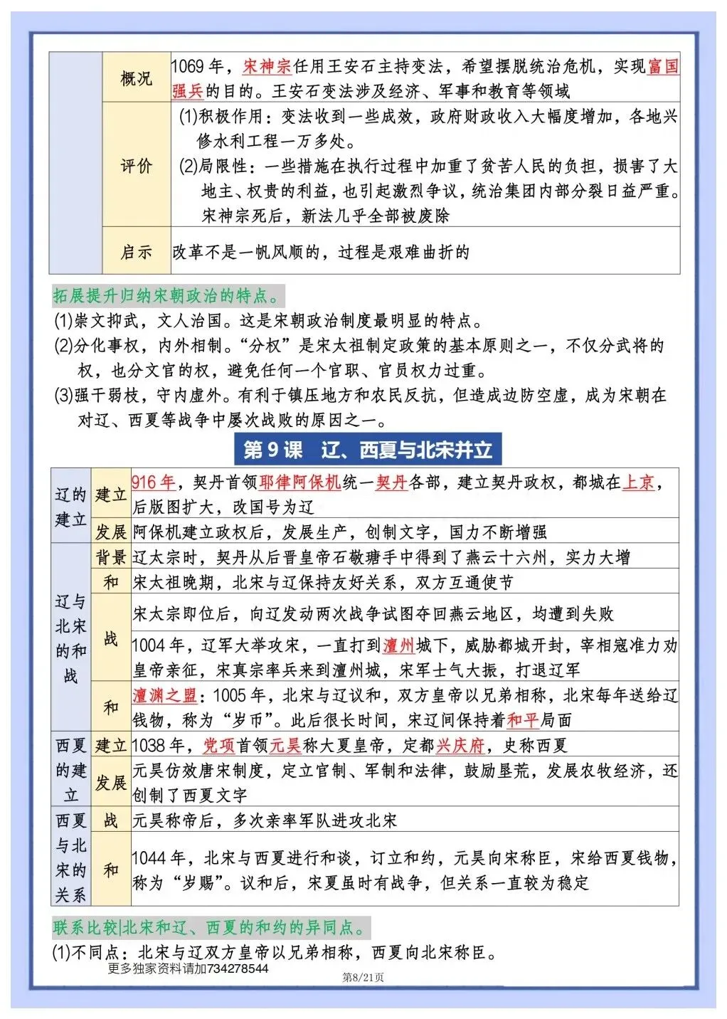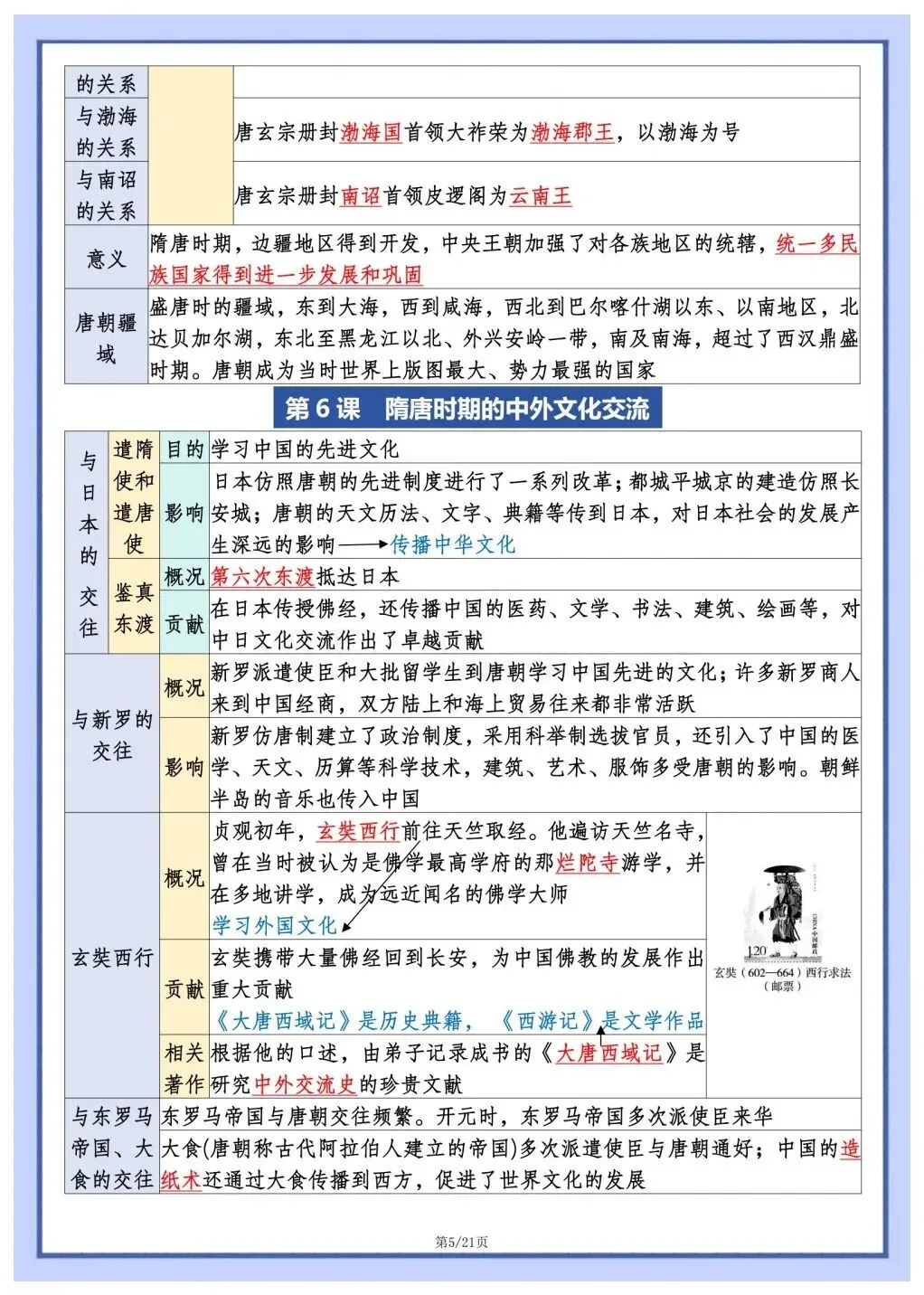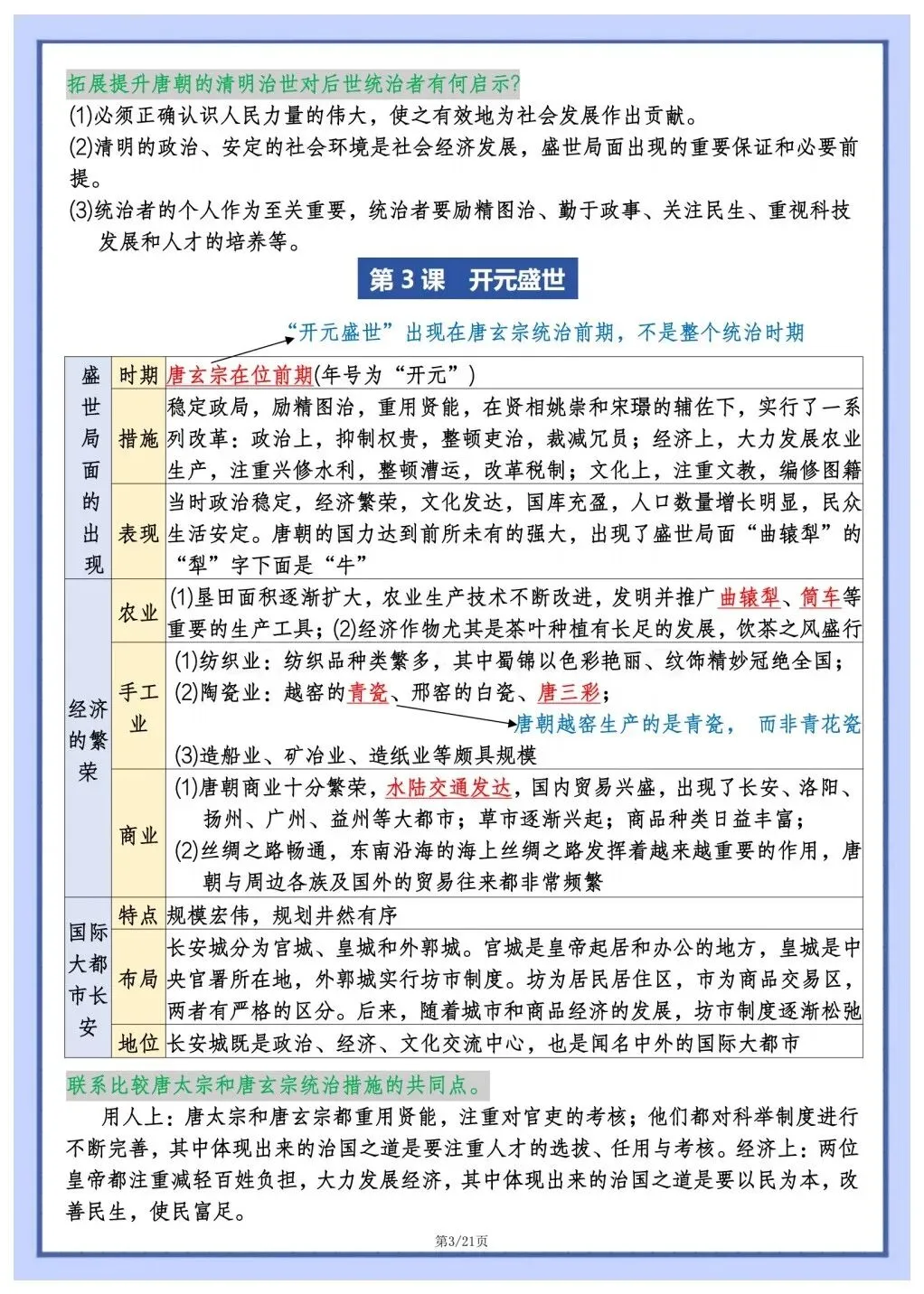 2026年春季新版七年级下册历史表格版知识提纲,可打印电子版!