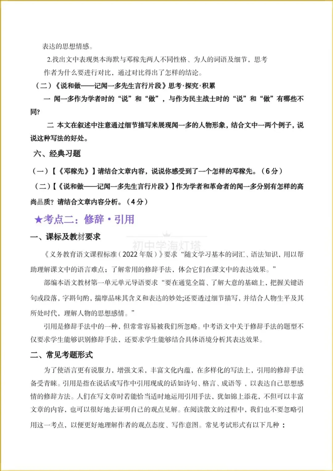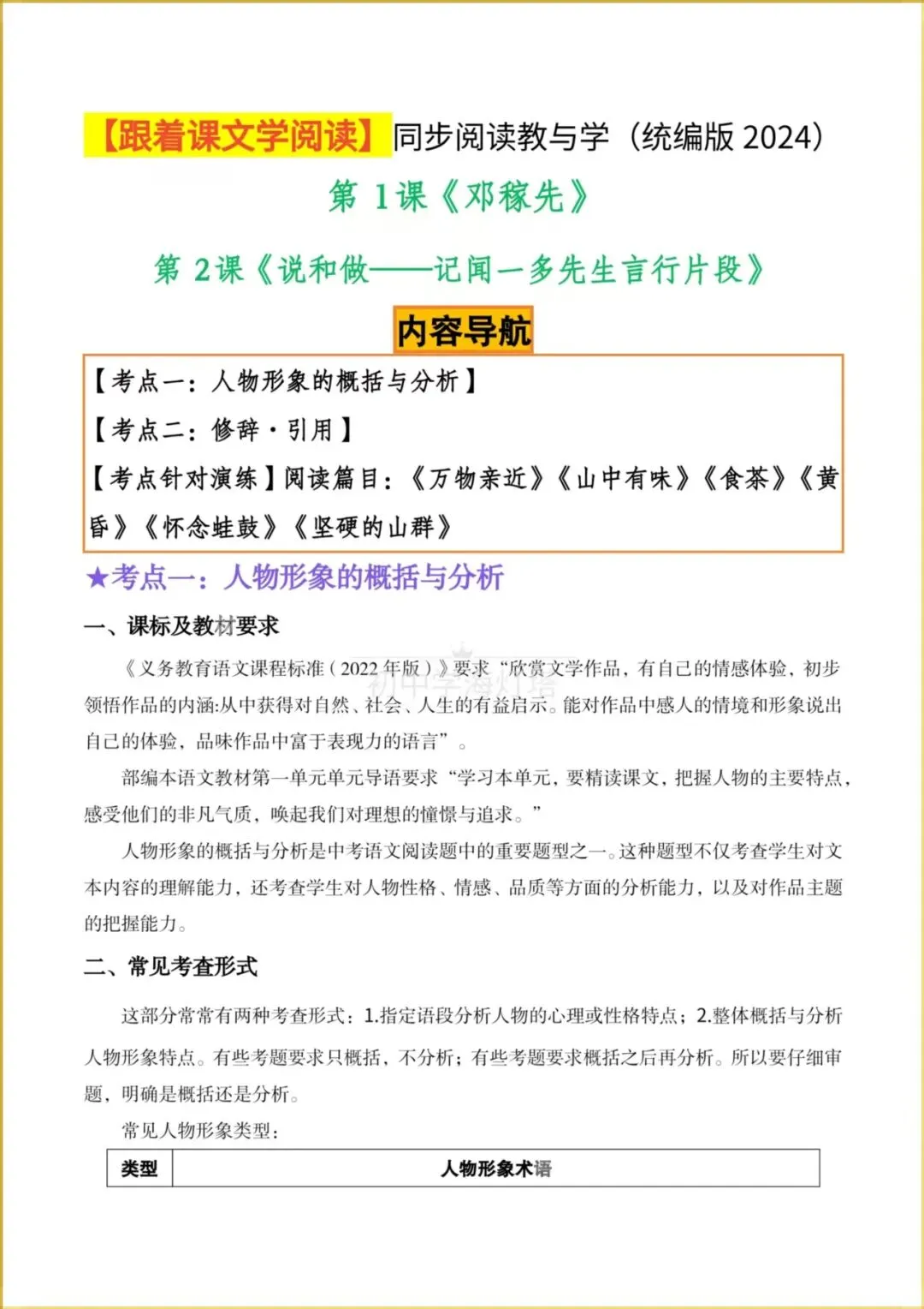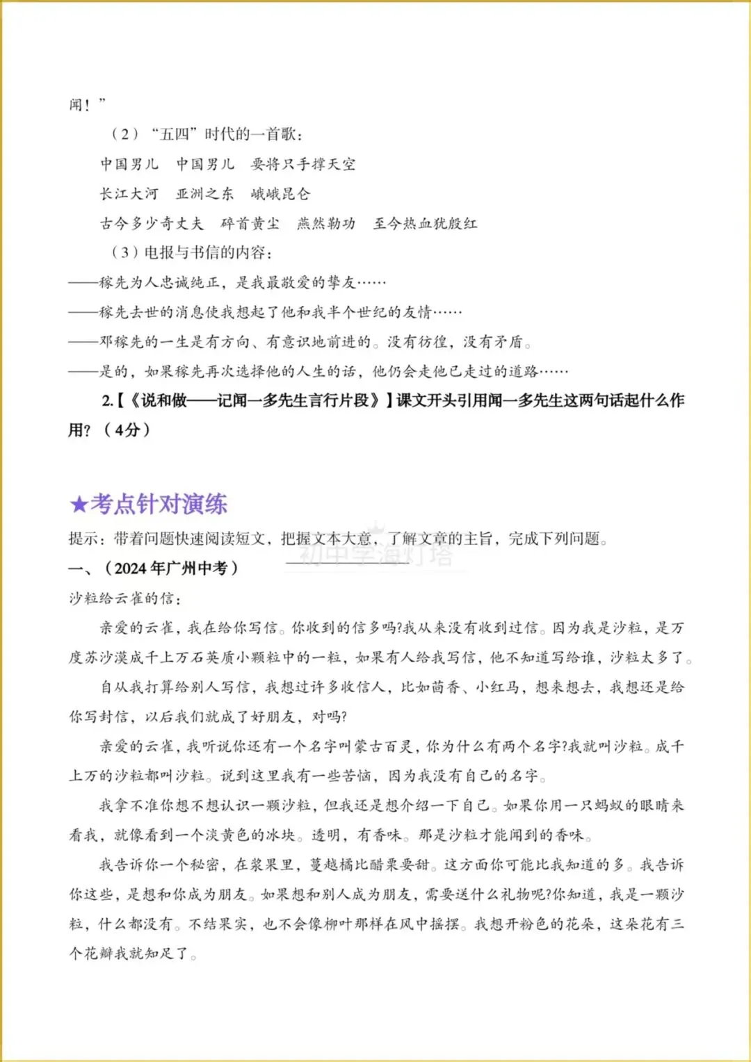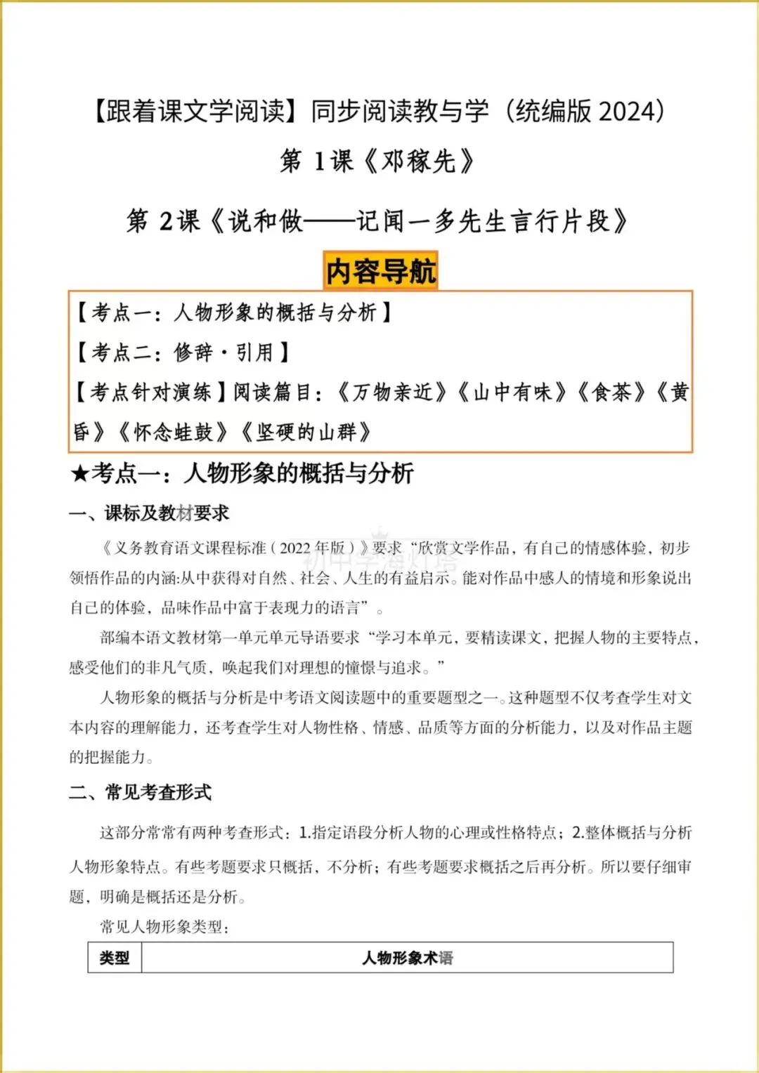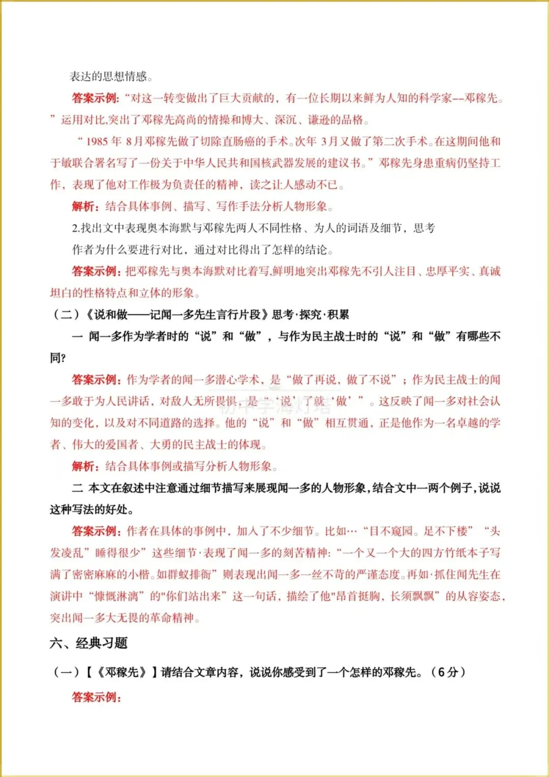 2026春【人教部编版】七年级下册〈语文〉跟着课文学阅读《邓稼先+说和做-记闻一多先生言行片段》同步阅读教与学(两个考点),有解析。