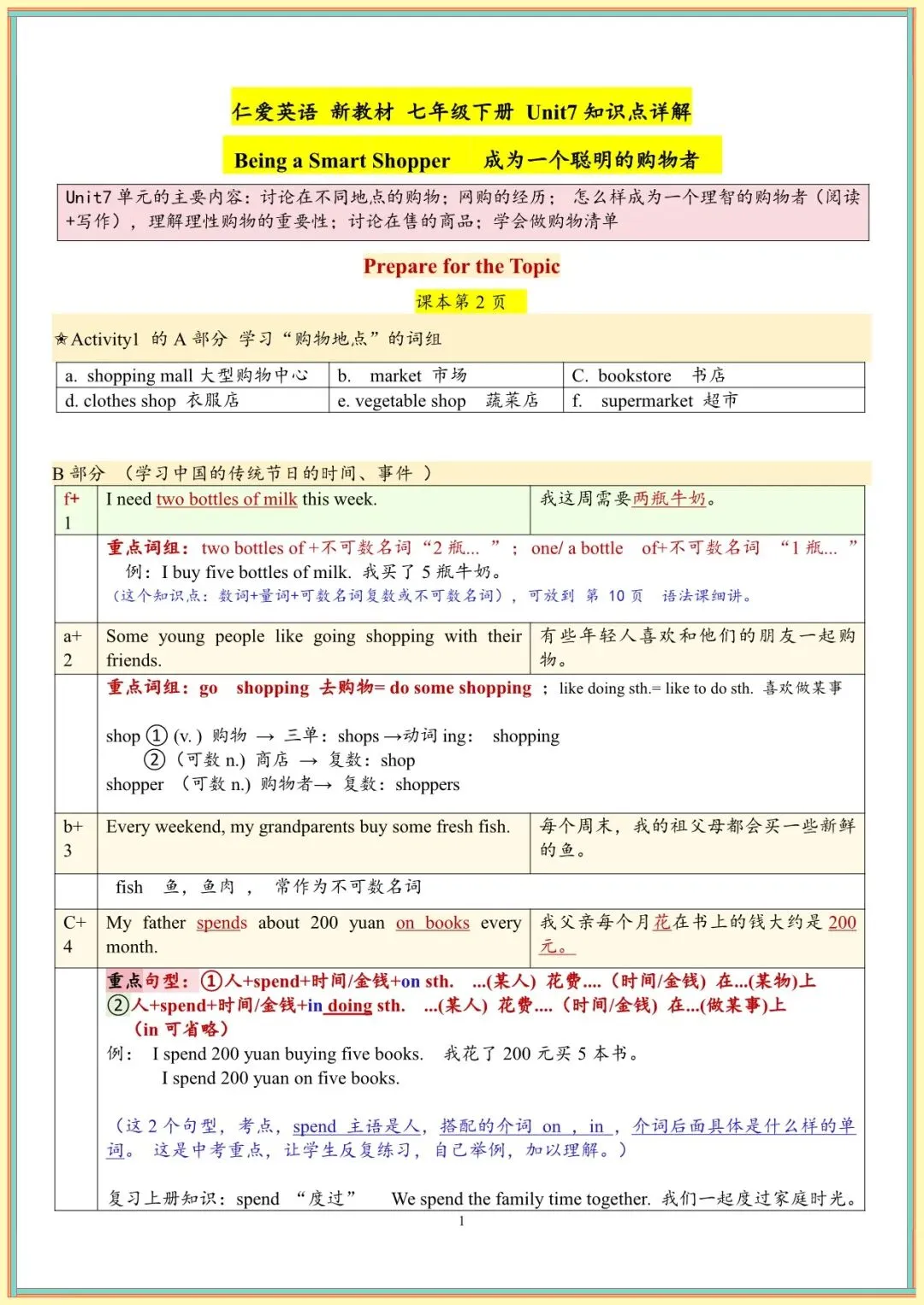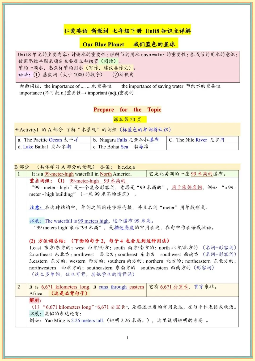 开学预习丨2026春新七下仁爱版英语Unit7-8【知识点详解】(可打印)