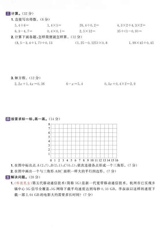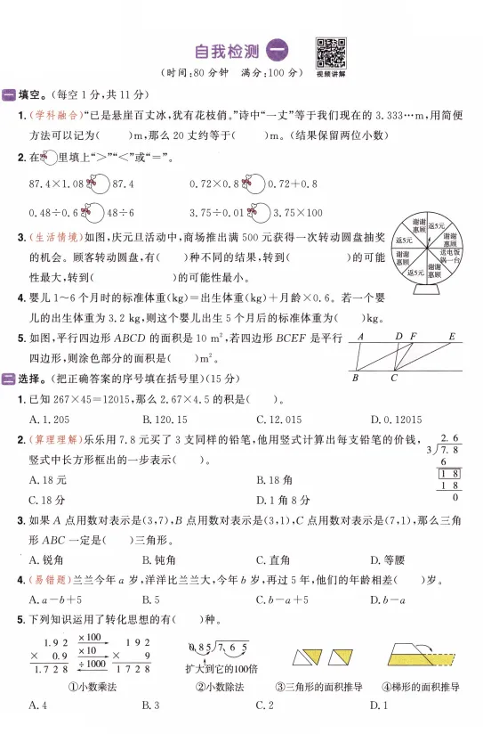 大家好,今天欣妈给大家分享的是:26春五年级下册人教版数学开学检测卷;一二三四五六年级同款,题型全面。电子版可下载可打印,拉至文末左下角,阅读原文处,完整电子版文章末尾可直接领取,无套路,欢迎收藏和下载。如果觉得这份资料不错,建议分享到班级群/年级群,让其他家长打印出来,帮助孩子学习;如果觉得合适,请支持正版!