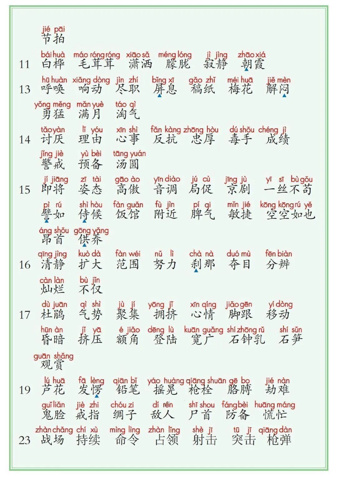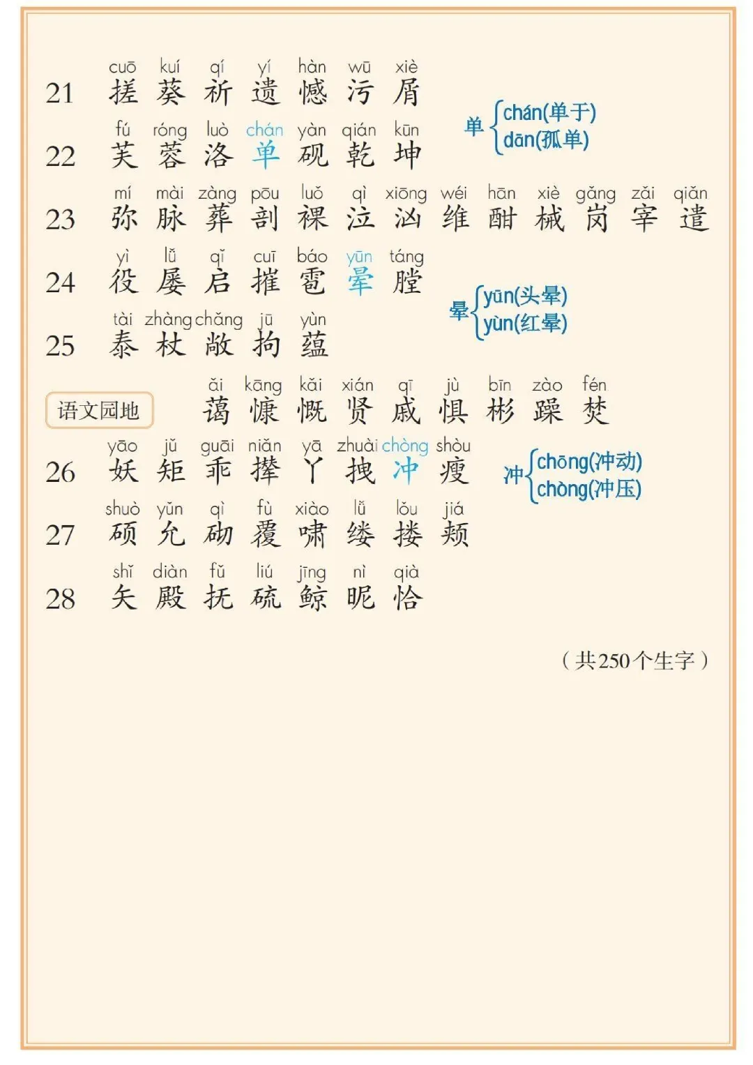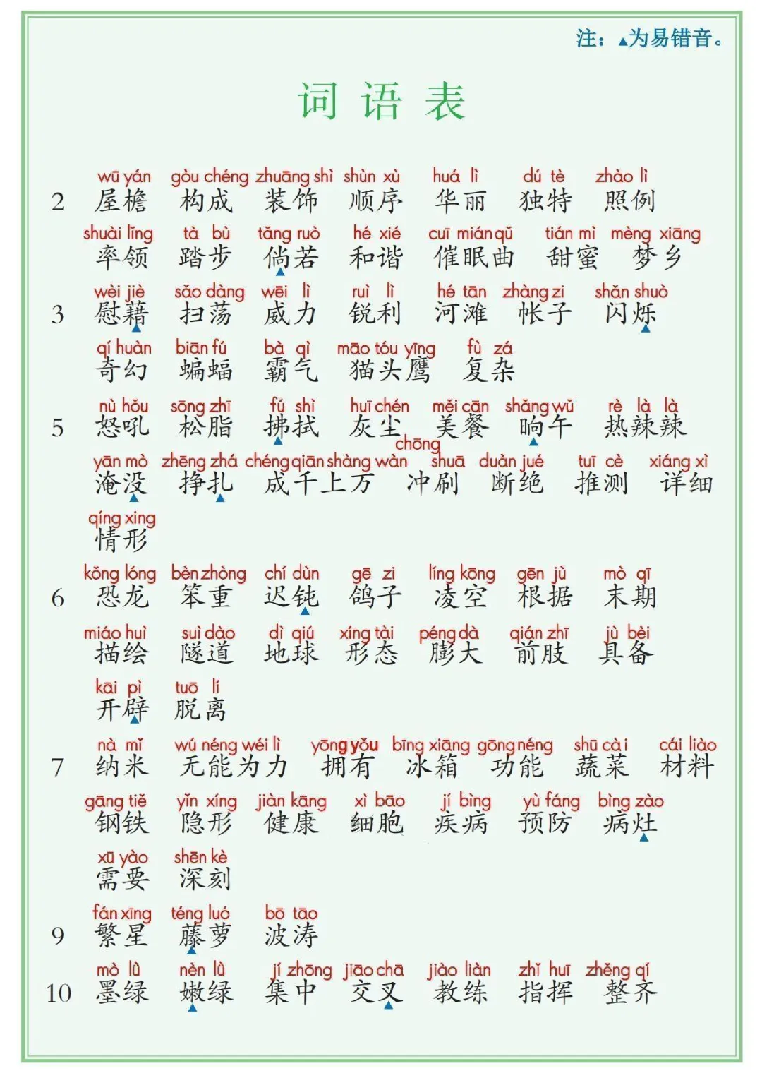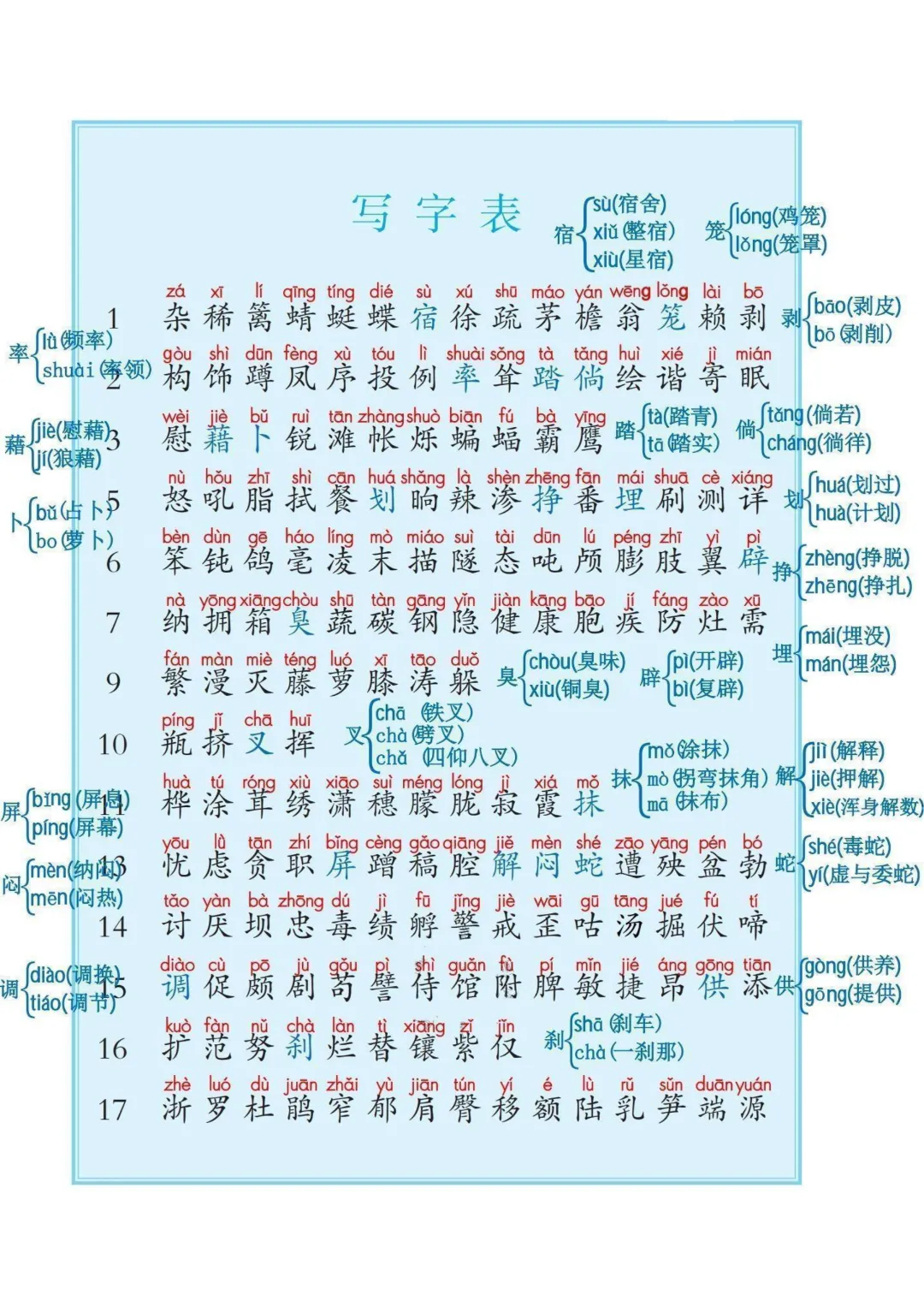 四年级下册语文《课后三表汇总》(注音版),电子版可打印