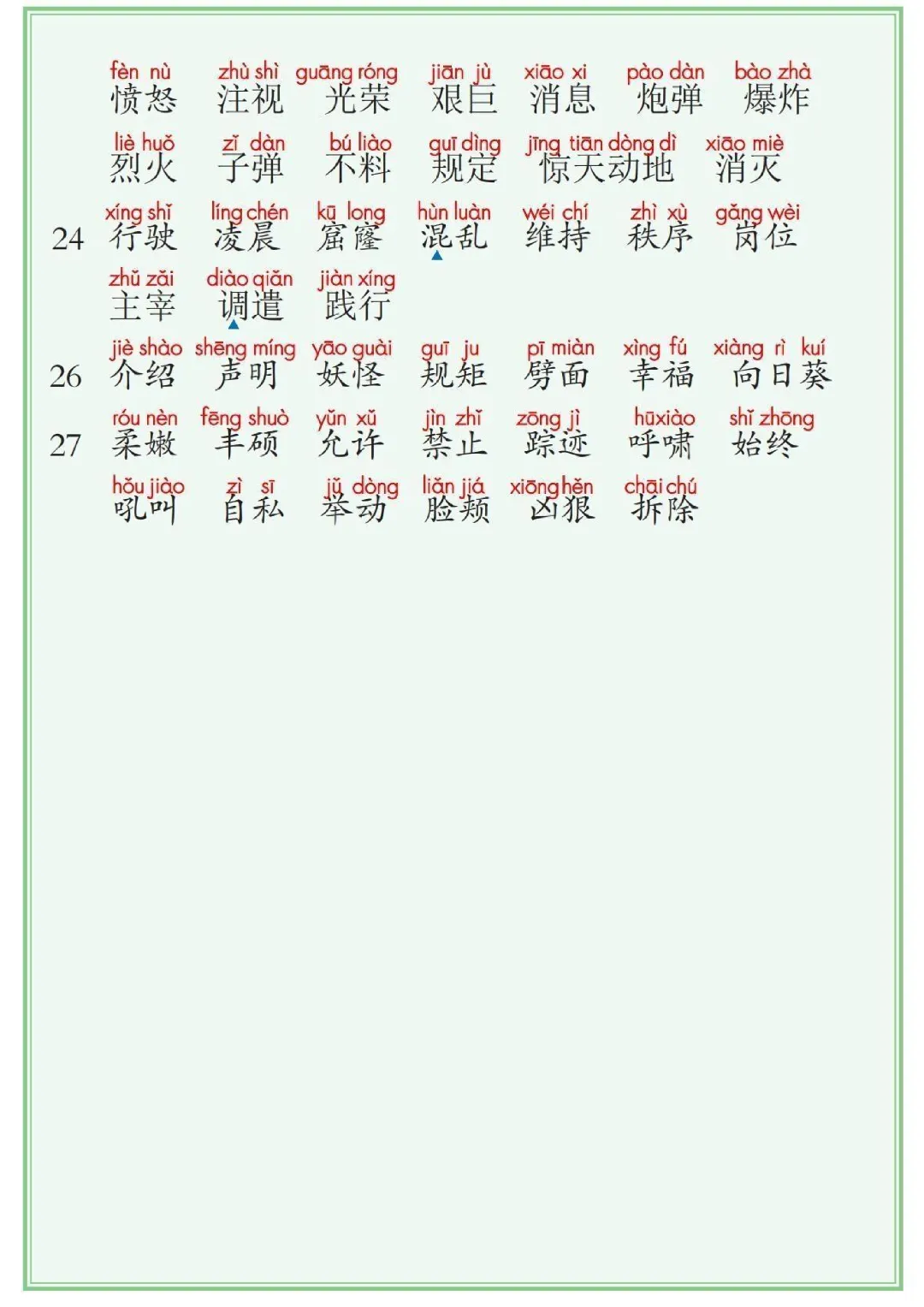 26年人教版四年级下册语文《课后三表汇总》,共8页,电子版可下载,这份四下注音版课后三表,包含了识字表、写字表、词语表中的所有生字词及相关知识点,帮助孩子准确掌握生字读音,是孩子预习复习的必备工具。有需要的家长抓紧打印出来,给孩子用起来吧!