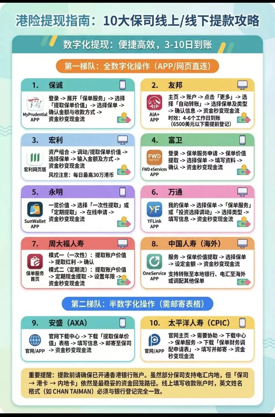 今天,我就结合实际操作,把市面上主流香港保险公司的保单提取操作路径,给大家盘一盘。如果你想把保单里的钱取出来,这篇文章就是你的“通关秘籍”。