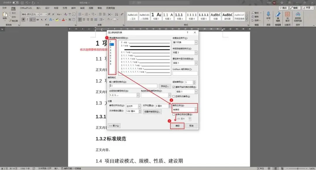依次修改需要调整的标题层级,修改完成后点击“确定”。