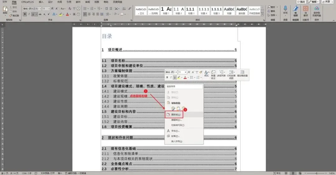 在目录区内点击鼠标右键,选择“更新域”(或选中目录后按F9键)。