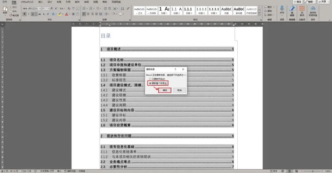 在弹出的更新目录选项卡中,选择“更新整个目录”,点击“确定”。