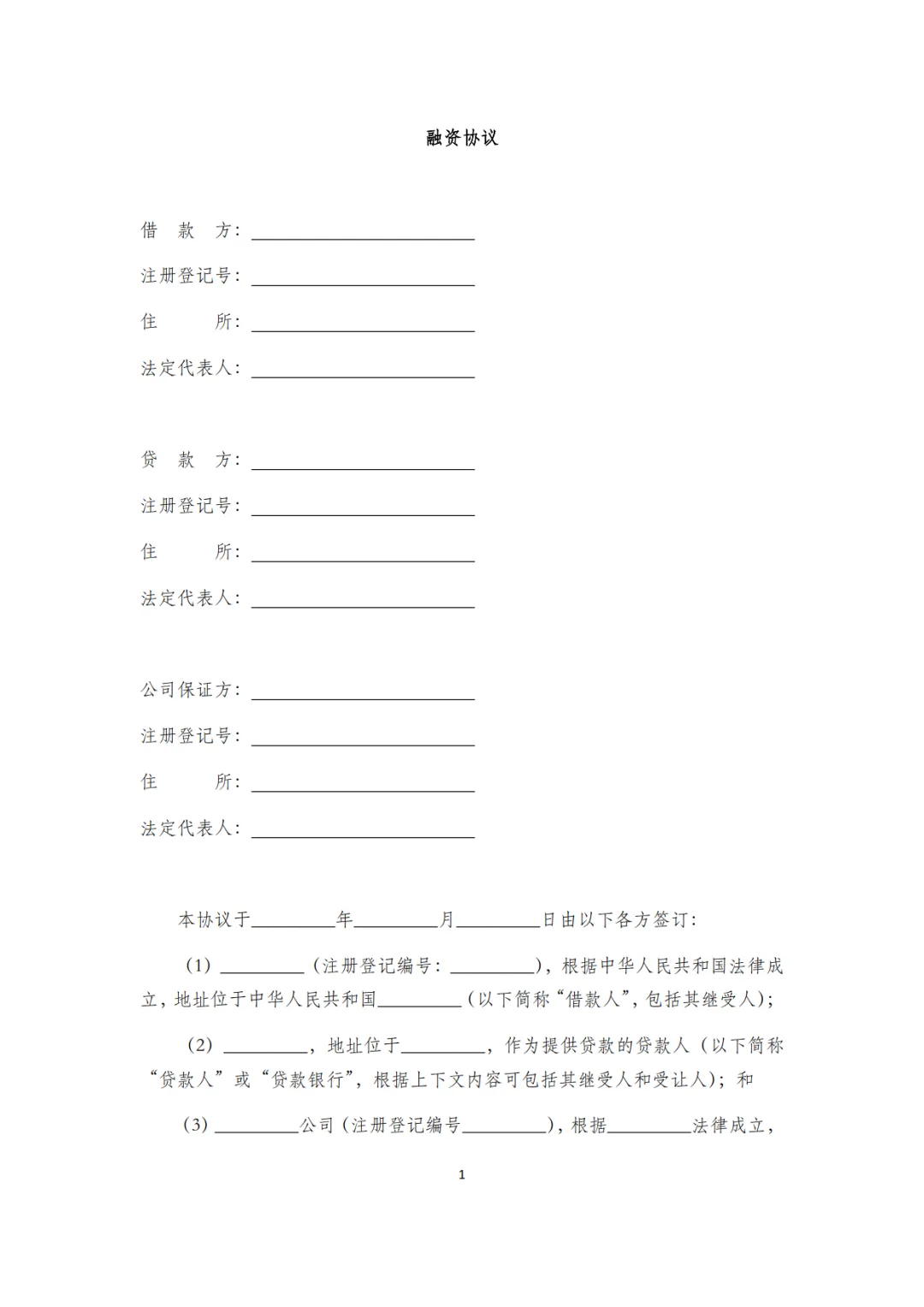 融资协议书范本,WORD文档电子版,可免费下载打印