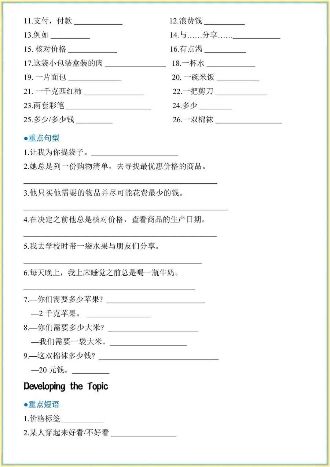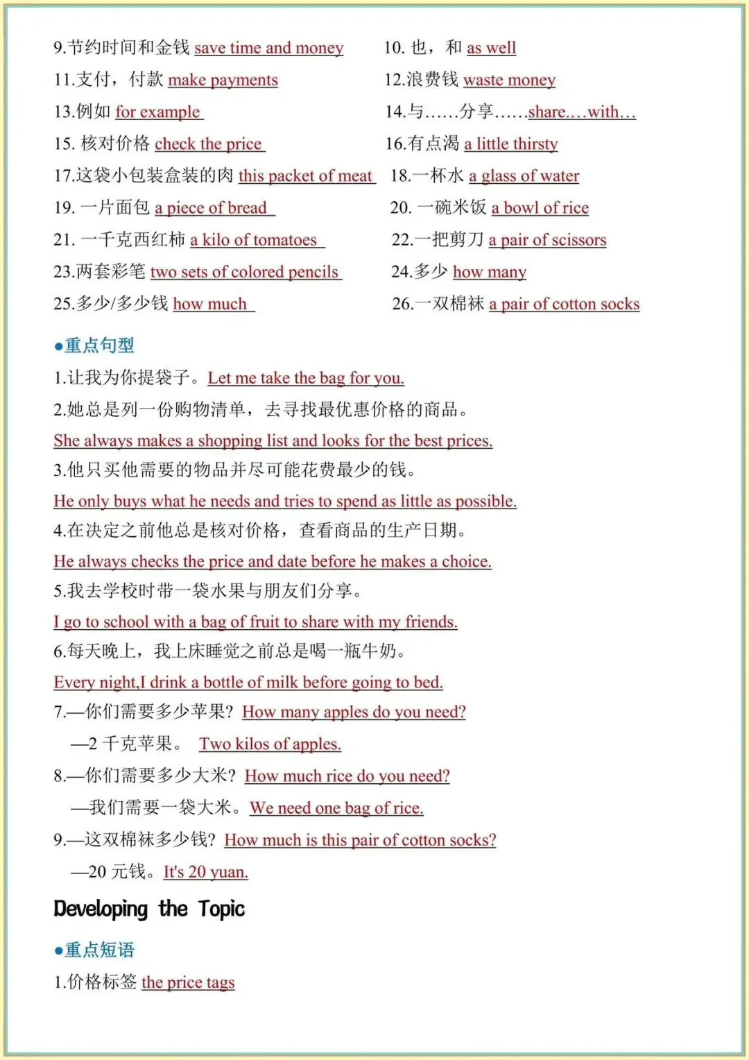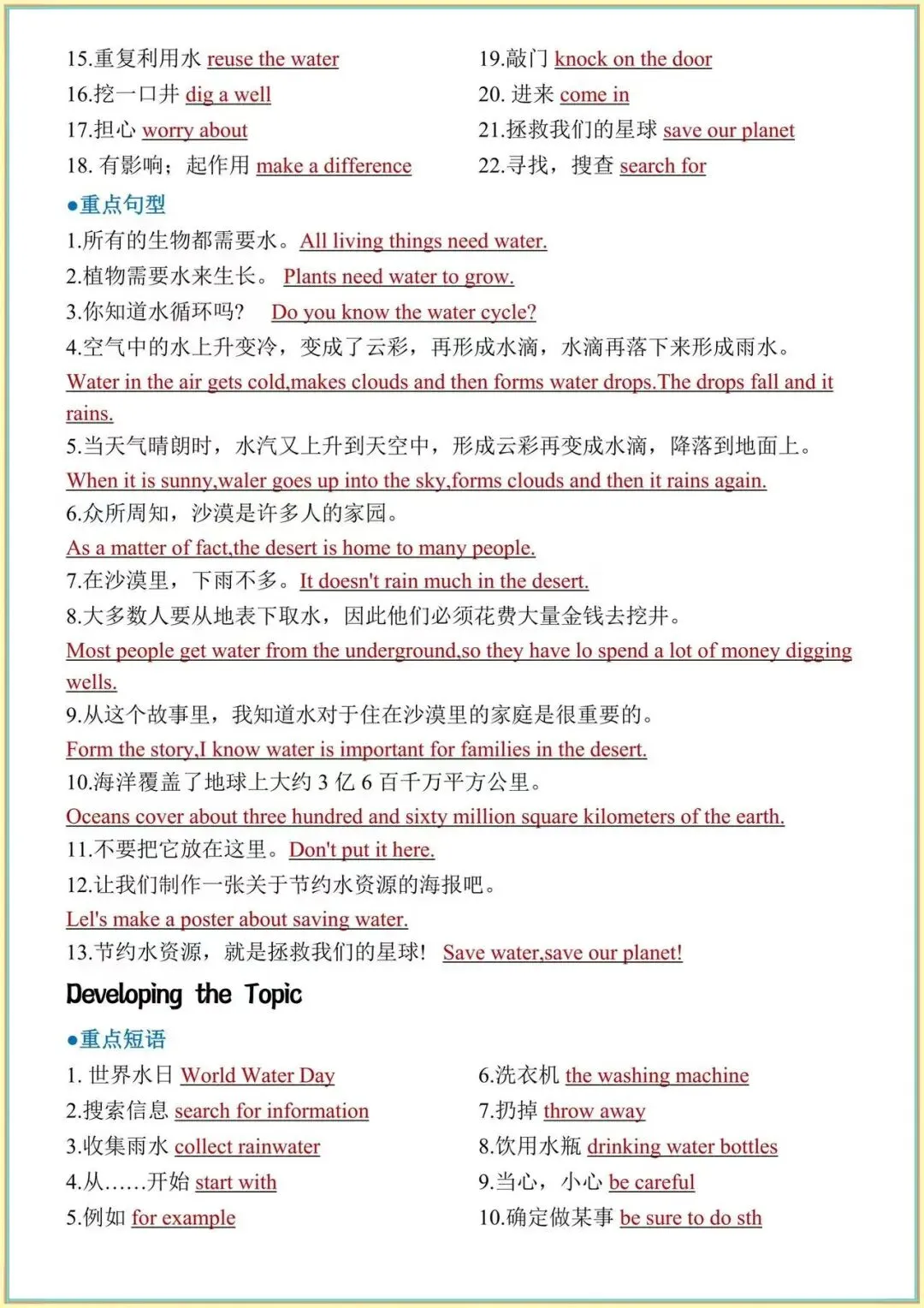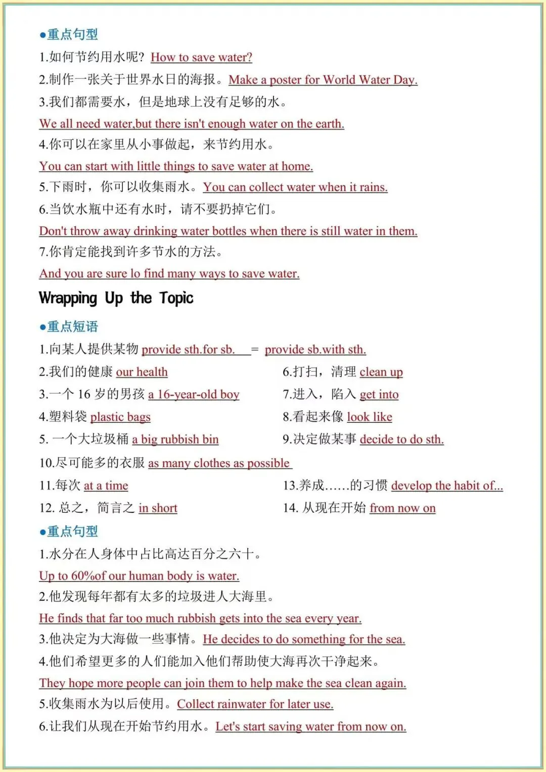 从短语到句型,从基础到考点,一篇全部整理好,不用翻书、不用找资料,直接打印就能背,考前复习超省心!