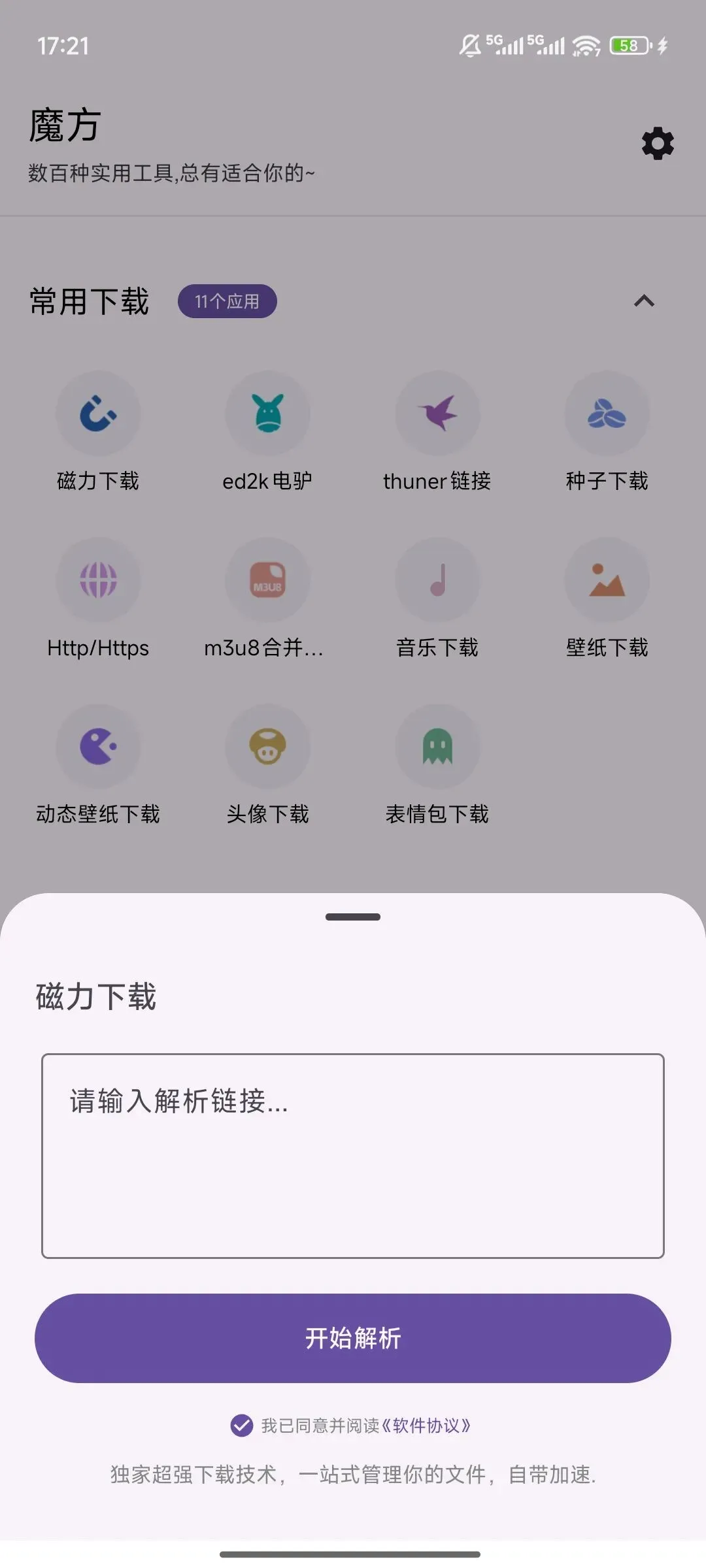 跟以往的工具聚合软件不同,别的为了多而多,所以很多工具都是凑数不实用的。魔方里的工具都非常使用,比如C力下载、抖Y解析、网盘搜素、文档转换、生成PPT等等,点开即用。