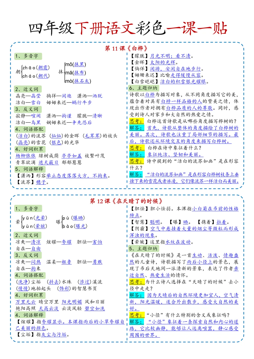 本站文章均为手工撰写未经允许谢绝转载:夜雨聆风 » 四年级(下)语文彩色一课一贴(课课贴)可打印!
