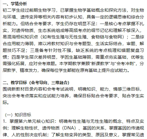 3. 终结性评价(学期末,适配会考):以初中生物会考为标准,组织期末综合评价,结合全学期形成性评价、阶段性评价结果和期末模拟检测成绩,对学生的知识掌握、能力提升、备考效果进行全面综合评分。同时,通过学生自评、小组互评、教师点评相结合的方式,引导学生反思自身备考中的优点和不足,总结备考经验,为后续冲刺会考明确方向。