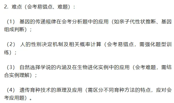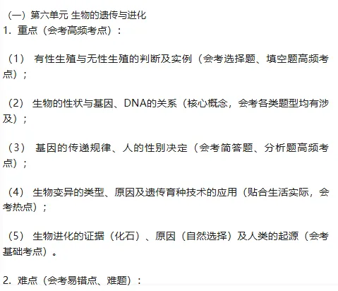 传育种技术的原理和应用;熟知生命的起源过程、生物进化的证据、原因及人类的起源相关知识点,牢记会考高频考点。