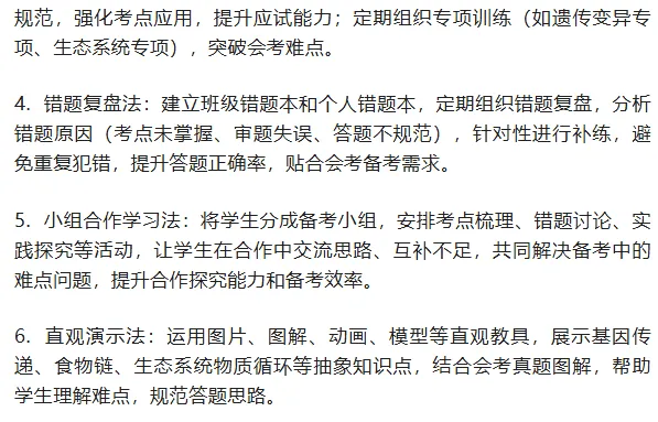 2. 考点梳理法:每节课、每章节结束后,及时梳理会考考点,构建知识网络(如思维导图),引导学生归纳总结,强化考点记忆,帮助学生理清知识脉络,应对会考综合题型。