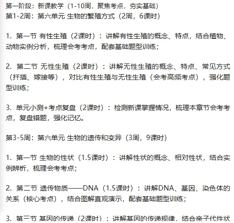 五、教学进度安排(兼顾新课教学与会考冲刺,共18周,含复习、检测)