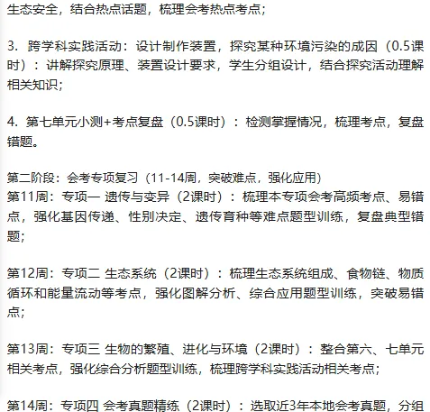 结合新教材目录、会考考试说明和学生学情,重点突破会考高频考点、易错点、难点,弱化非考点内容,确保教学针对性,助力会考冲刺。