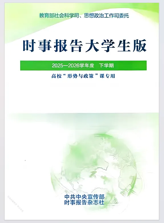 翻开《时事报告(大学生版)2025-2026 下学期》,仿佛推开了一扇洞察国家发展与世界变局的窗口。作为高校 “形势与政策” 课的专用教材,这本书以系统的框架、翔实的数据和深刻的分析,将 “十五五” 开局之年的时代蓝图清晰铺展在读者面前,让我在字里行间感受到了中国式现代化的强劲脉动,也对青年一代的使命担当有了更为清晰的认知。