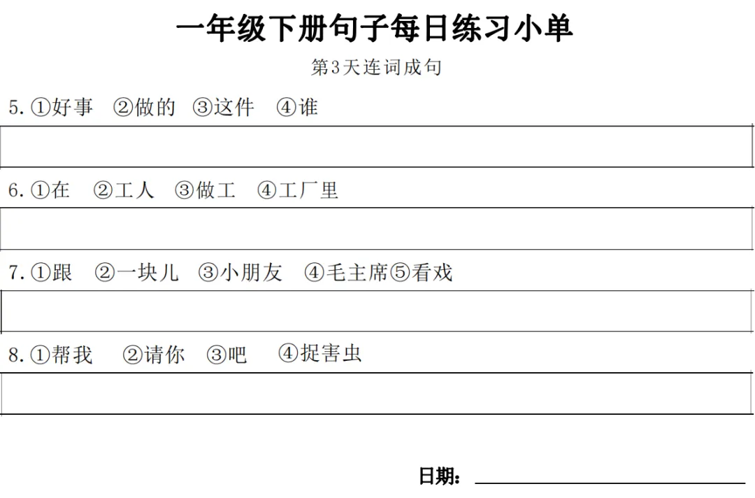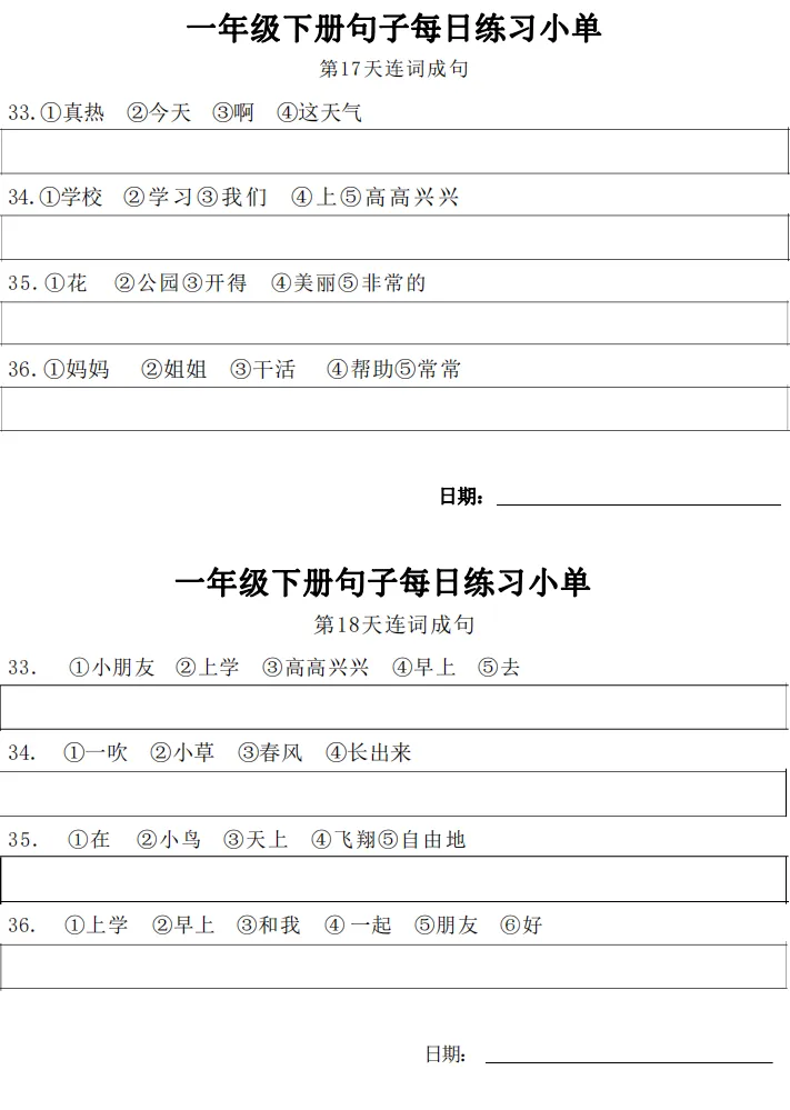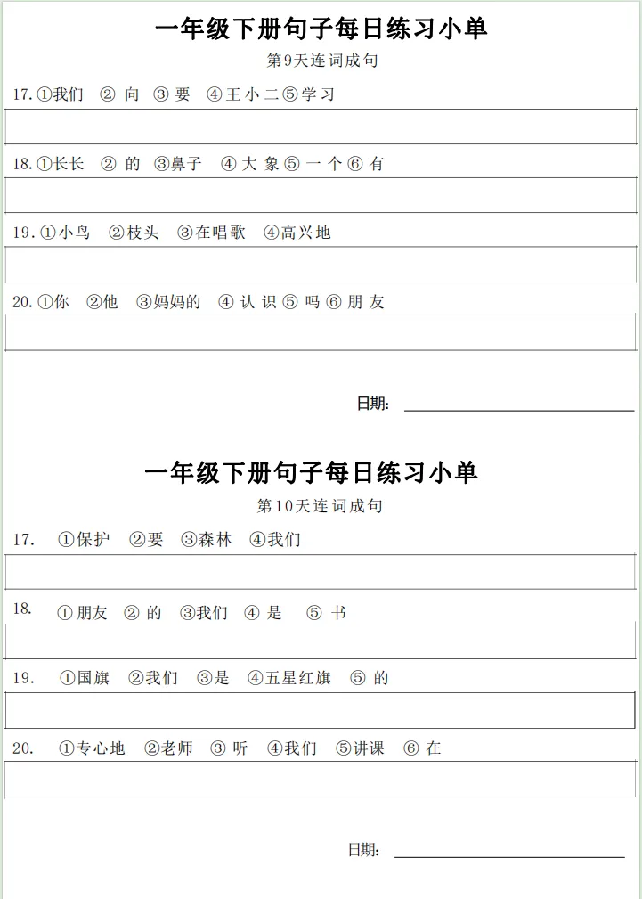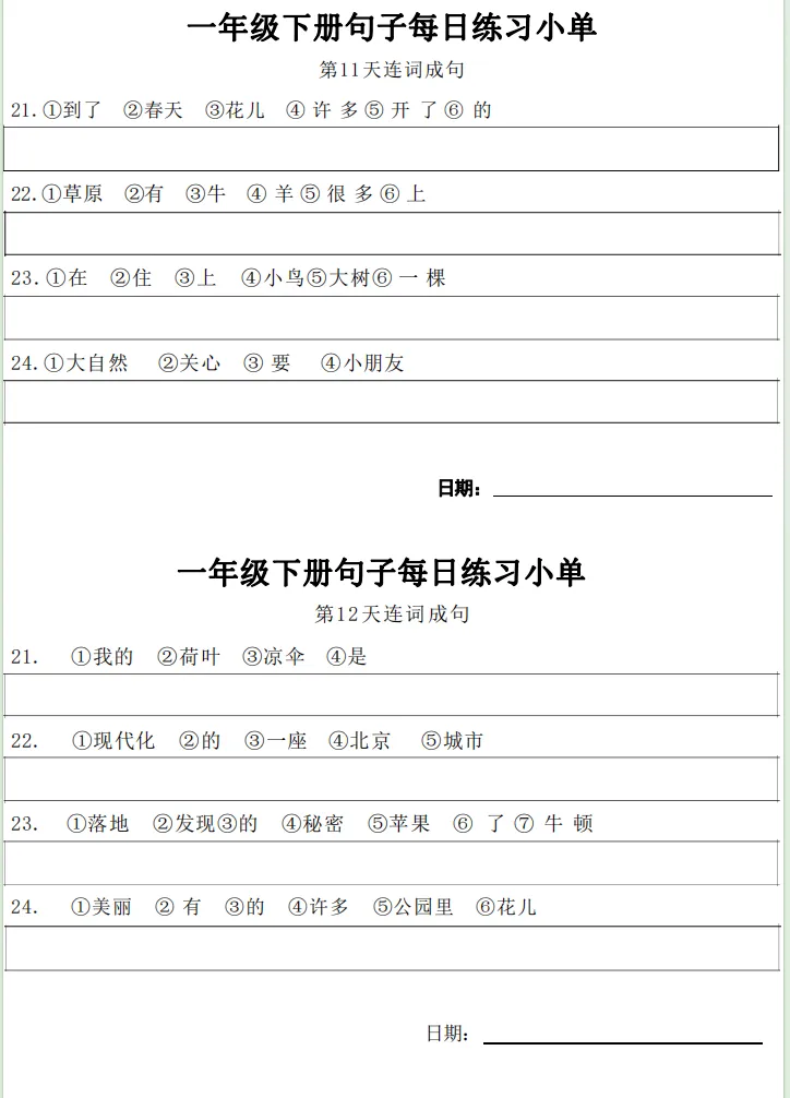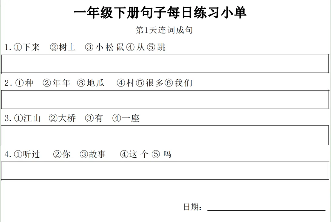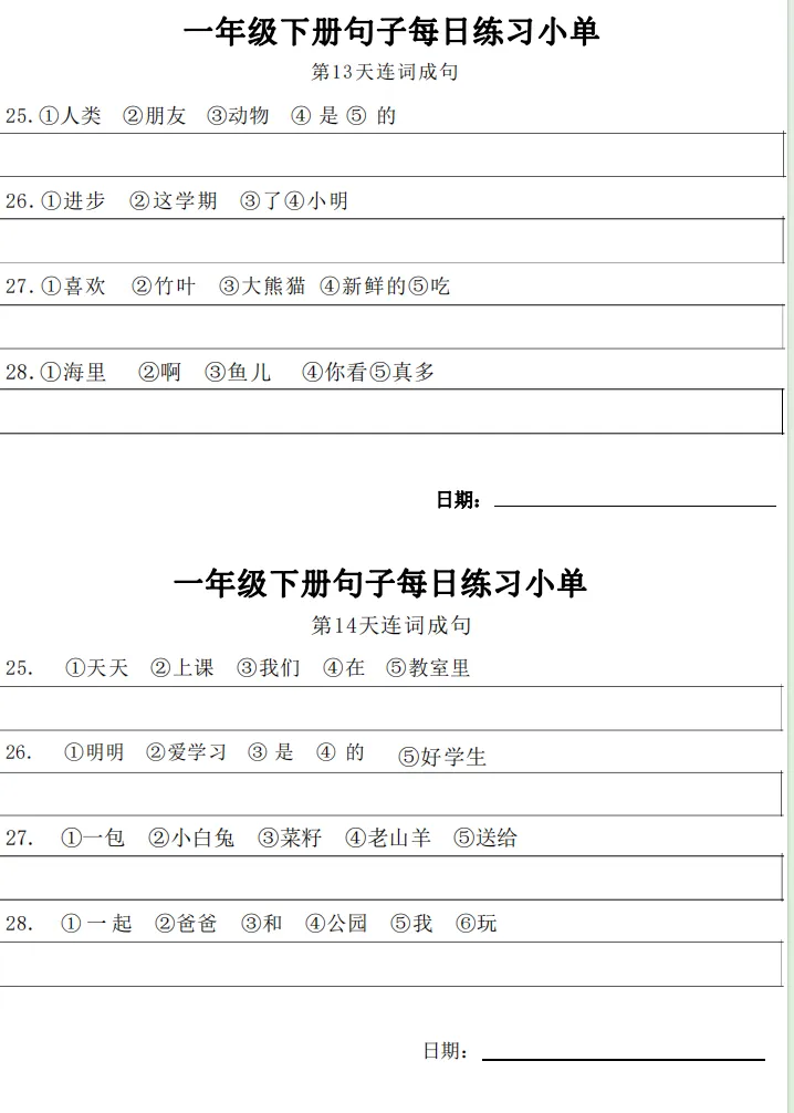 一年级下册【句子练习】| 每日一练 (电子版免费下载) 2026年春季语文练习下载方式下拉至文末 小学语文2026春季练习电子版下载方式 1.关注公众号——私信回复【语文】 2.点击链接或复制整段内容,打开「夸克APP」即可获取。 链接:https://pan.quark.cn/s/7cb64f0da3f2