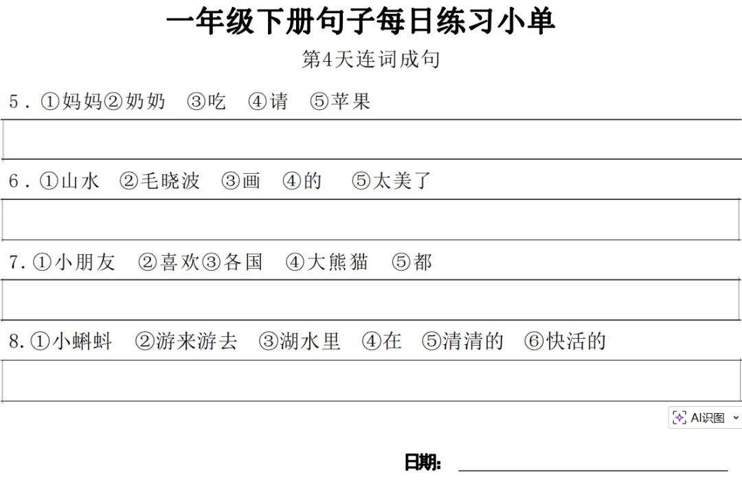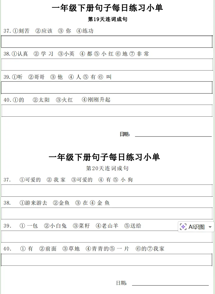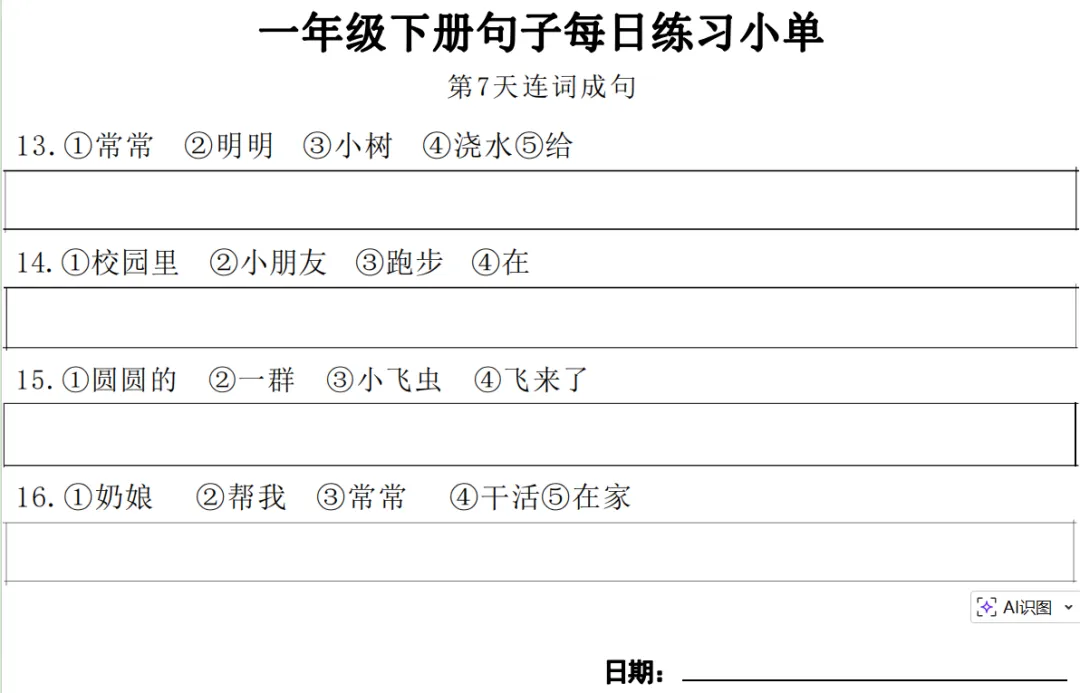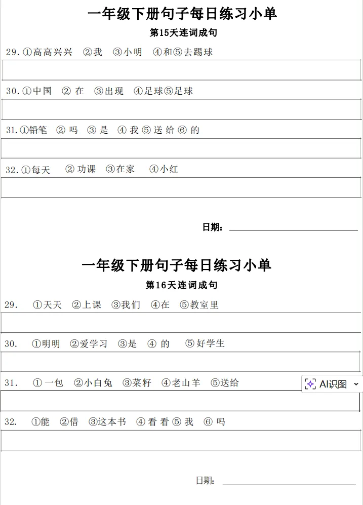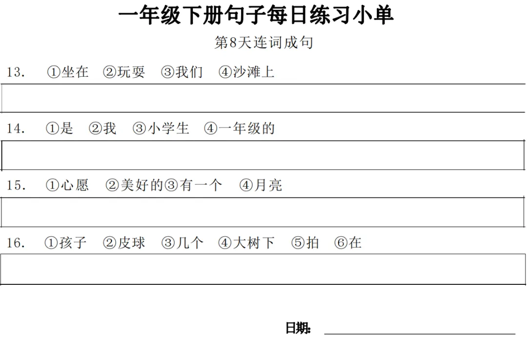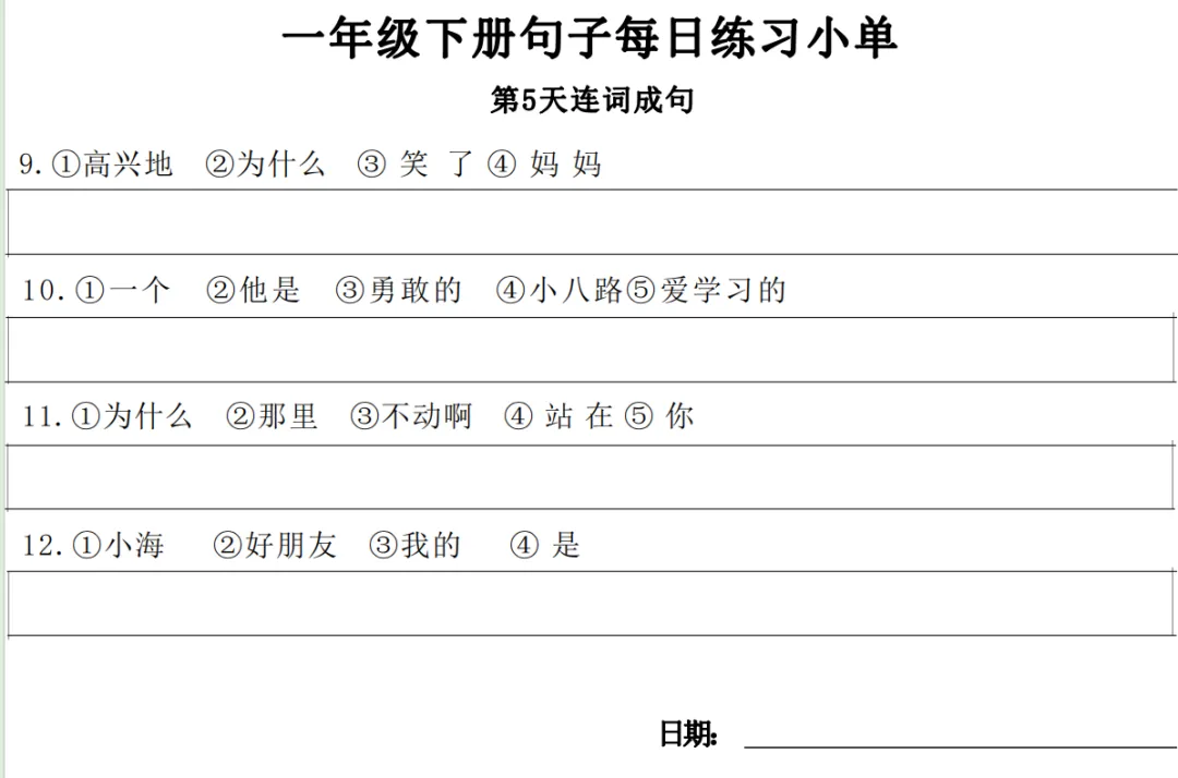 一年级下册【句子练习】| 每日一练 (电子版免费下载) 2026年春季语文练习下载方式下拉至文末 小学语文2026春季练习电子版下载方式 1.关注公众号——私信回复【语文】 2.点击链接或复制整段内容,打开「夸克APP」即可获取。 链接:https://pan.quark.cn/s/7cb64f0da3f2