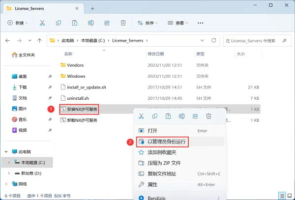 4、找到【安装NX许可服务】应用程序,右键选择【以管理员身份运行】它。