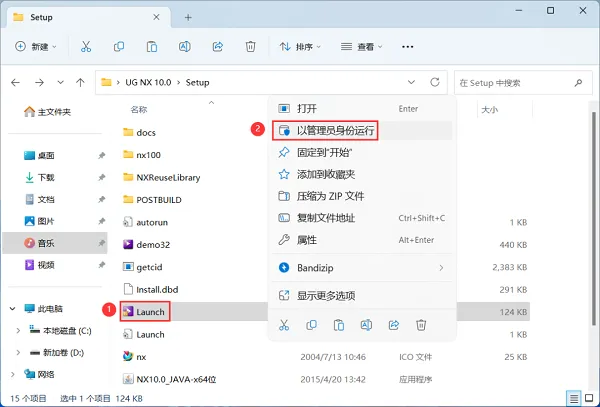 14、回到Setup文件夹,找到【Launch】应用程序,右键选择【以管理员身份运行】它。